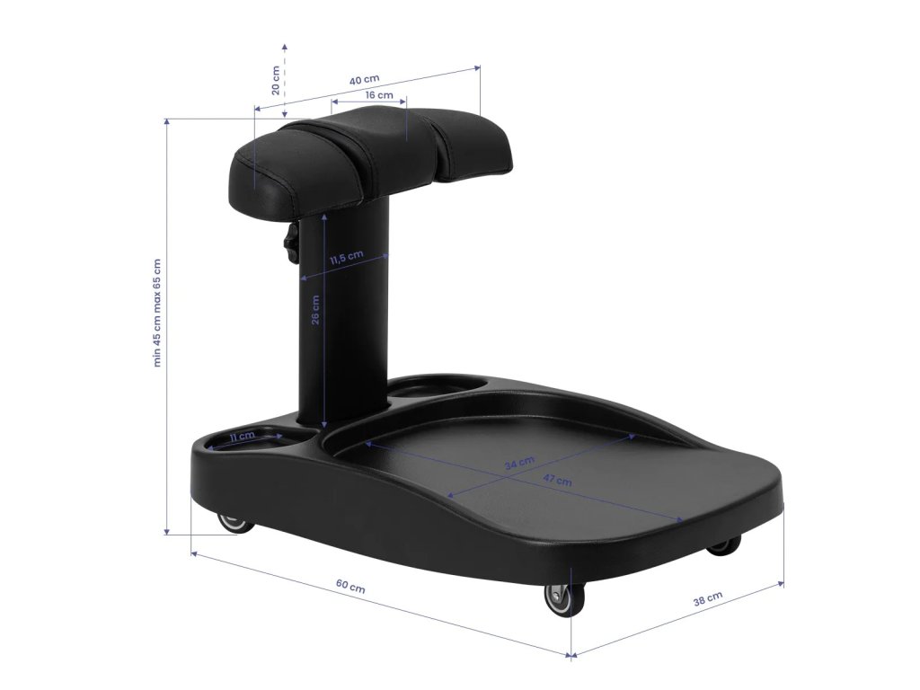 Vozík s nastavitelnou výškou opěrky nohou je nenahraditelným vybavením kosmetických a podiatrických salonů.