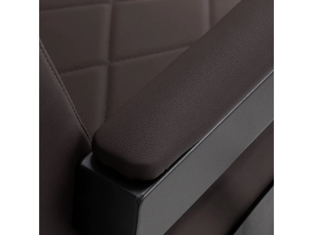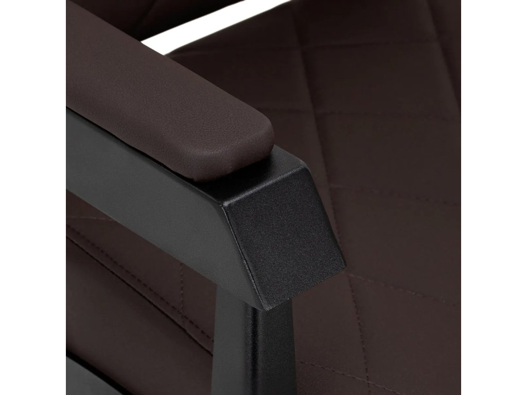 Hnědé čalounění v kombinaci s černým rámem dodává židli moderní a profesionální vzhled.