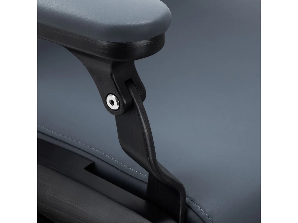 Křeslo má polohovací opěradlo a nastavitelnou opěrku nohou , která umožňuje