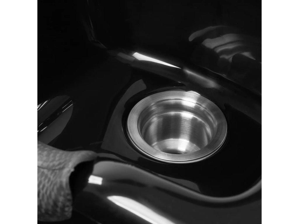 Hluboká černá mísa je vyrobena z odolného plastu, proto je odolná vůči poškození a snadno se udržuje