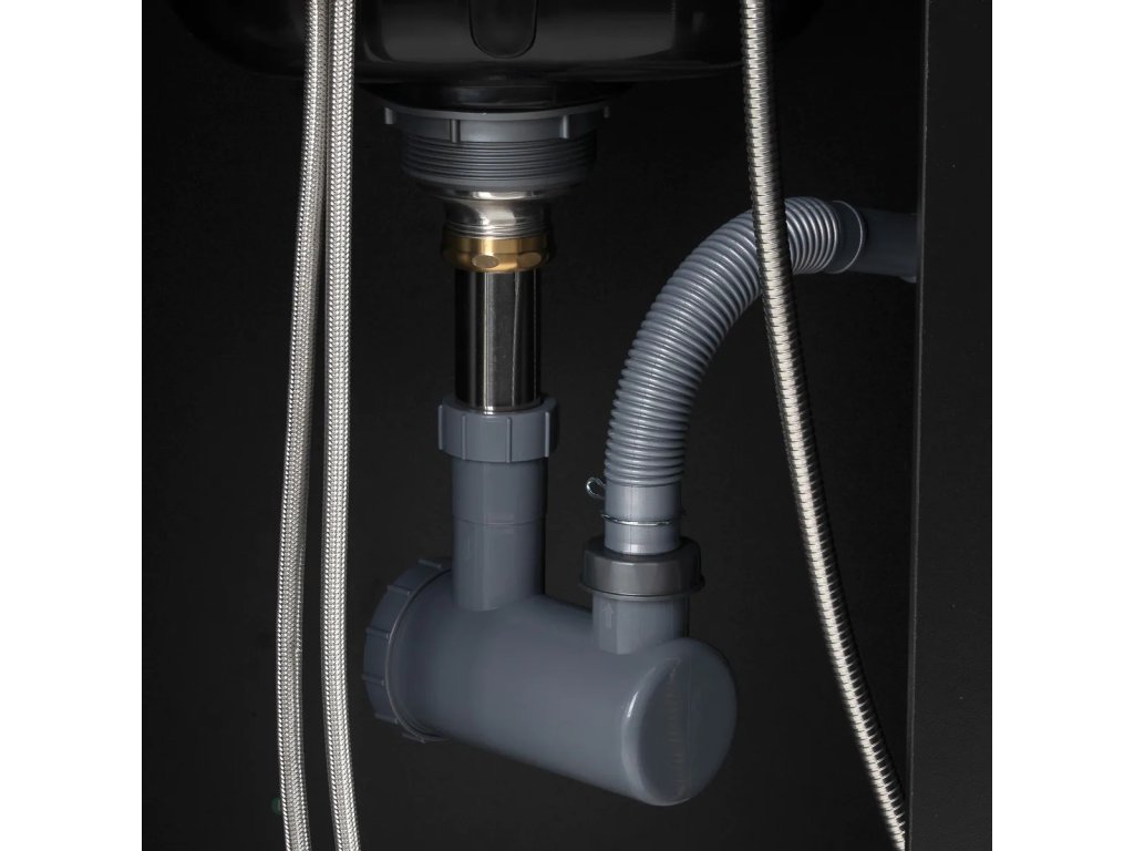 umožňuje skrýt potrubí a odpad, což pomáhá udržovat pořádek a profesionální vzhled stanice.