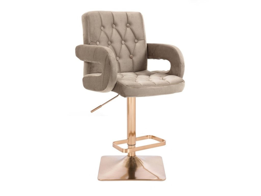 Barová židle BOSTON VELUR na zlaté hranaté podstavě - latte