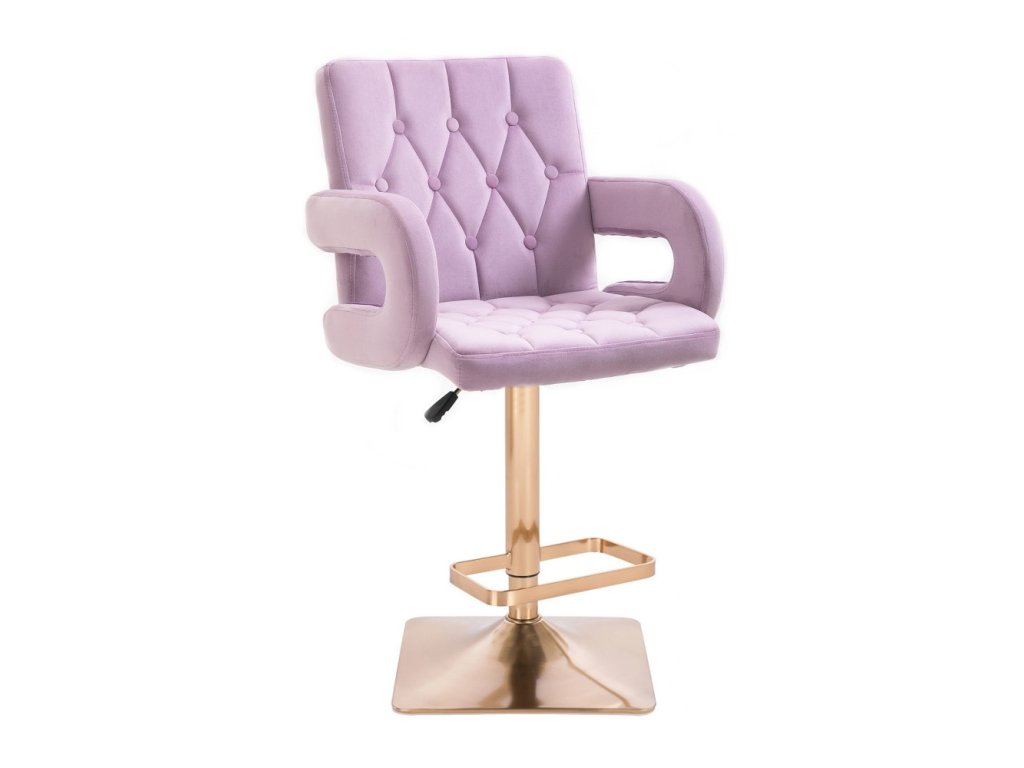 Barová židle BOSTON VELUR na zlaté hranaté podstavě - levandule