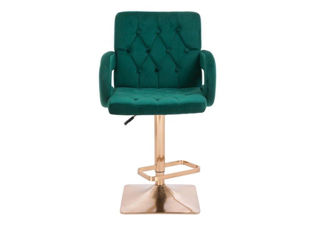 Barová židle BOSTON VELUR na zlaté hranaté podstavě - zelená