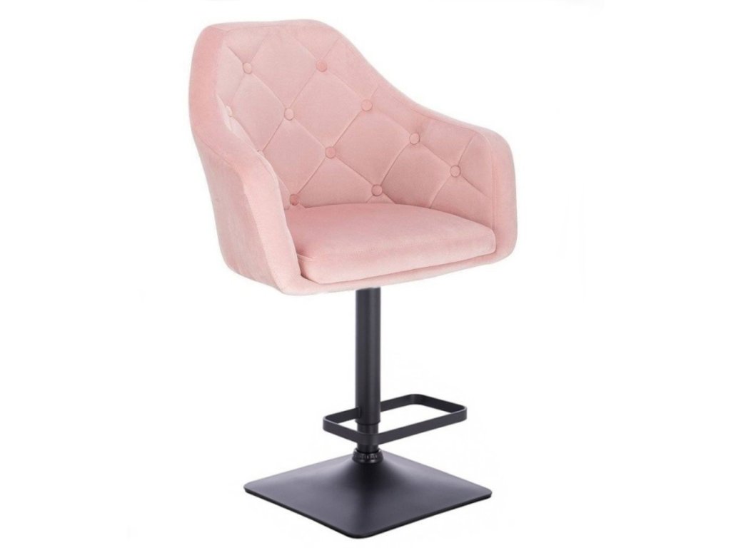 Barová židle ANDORA VELUR na černé hranaté podstavě - světle růžová