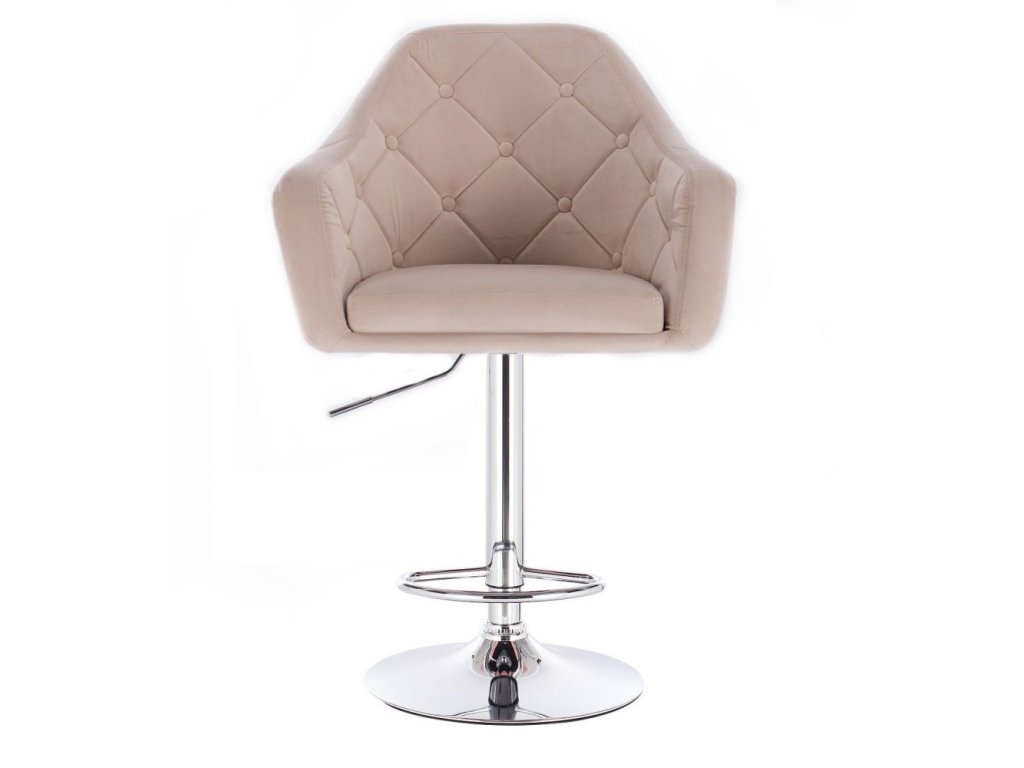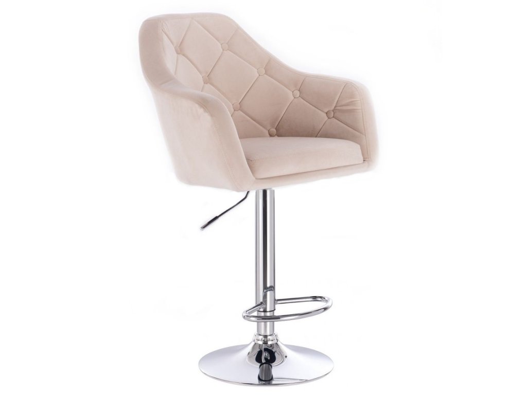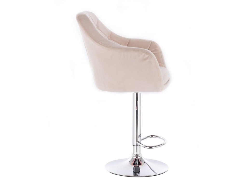 Barová židle ANDORA VELUR na stříbrné kulaté podstavě - krémová