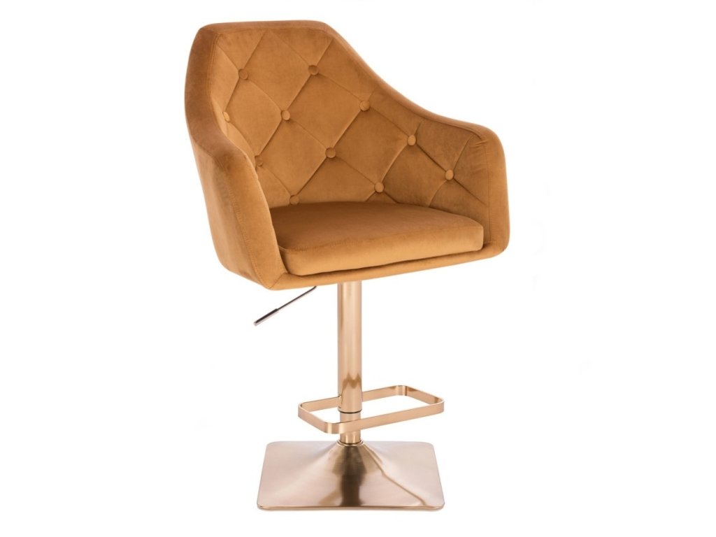 Barová židle ANDORA VELUR na zlaté hranaté podstavě - medová