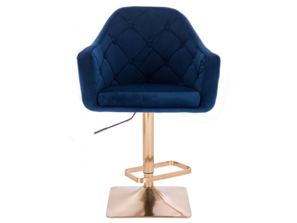 Barová židle ANDORA VELUR na zlaté hranaté podstavě - modrá