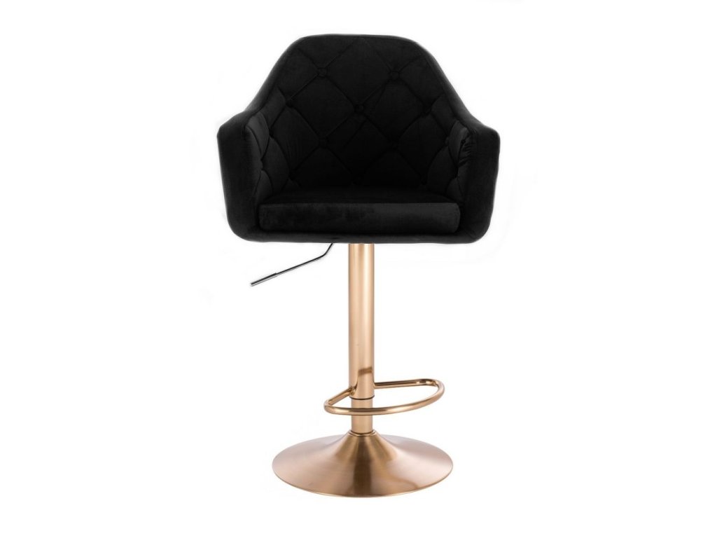 Barová židle ANDORA VELUR na zlatém talíři - černá