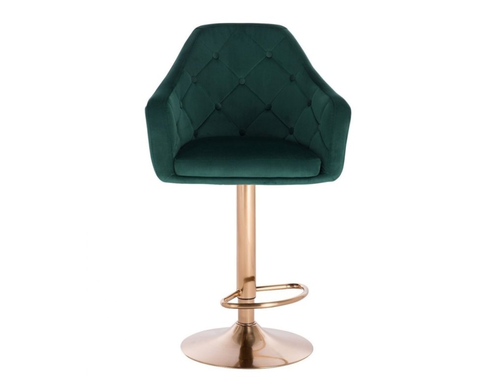 Barová židle ANDORA VELUR na zlatém talíři - zelená