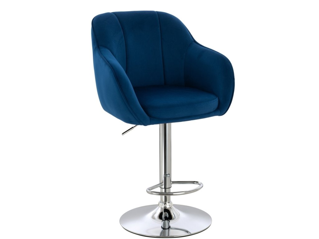Barová židle AVOLA VELUR na stříbrném talíři - modrá