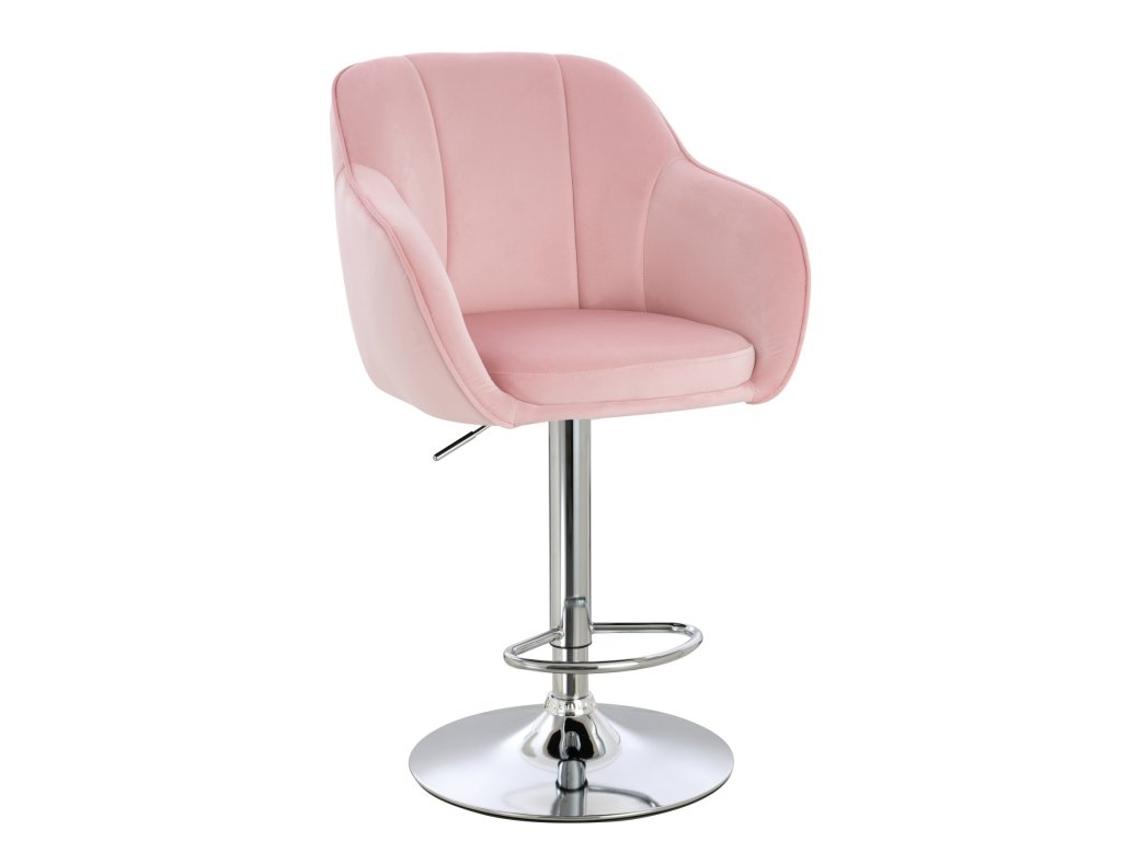 Barová židle AVOLA VELUR na stříbrném talíři - světle růžová