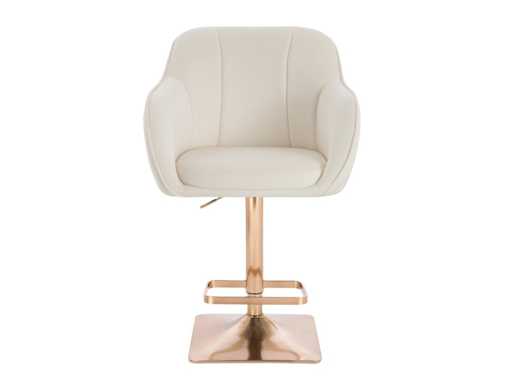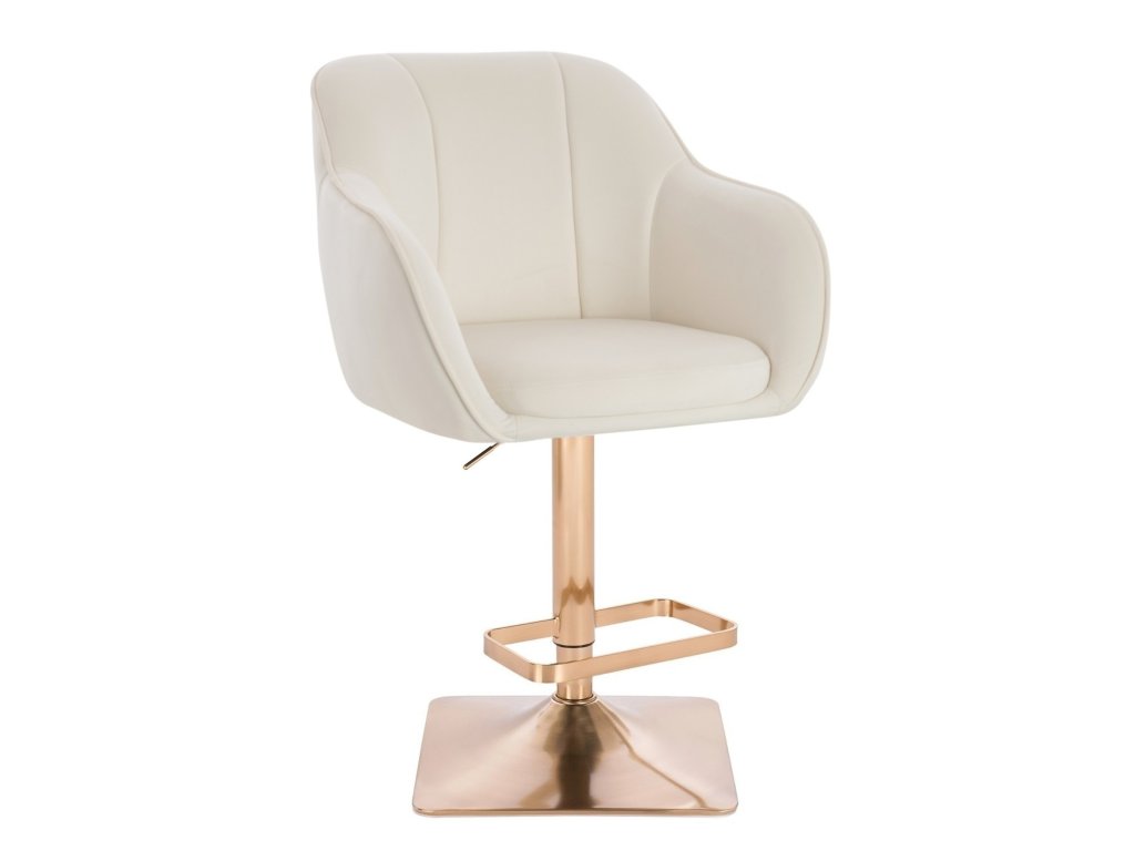Barová židle AVOLA VELUR na zlaté hranaté podstavě - bílá