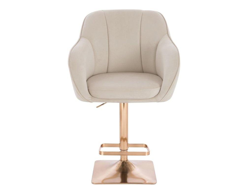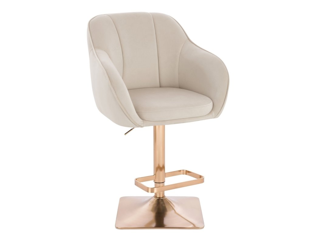 Barová židle AVOLA VELUR na zlaté hranaté podstavě - krémová