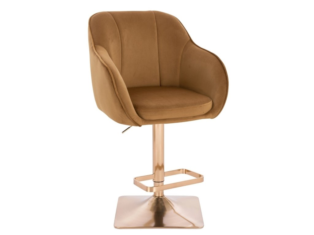 Barová židle AVOLA VELUR na zlaté hranaté podstavě - medová