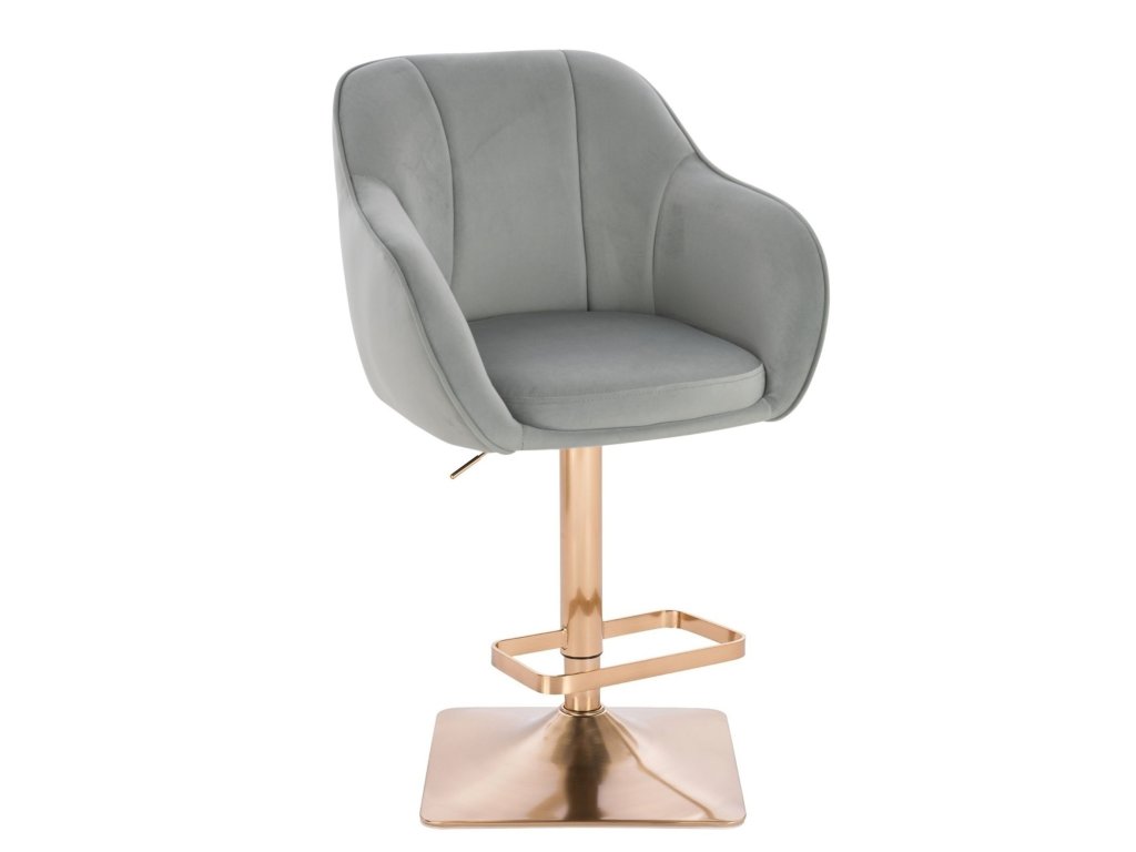 Barová židle AVOLA VELUR na zlaté hranaté podstavě - světle šedá
