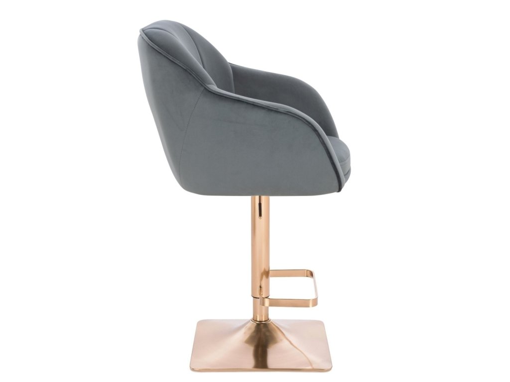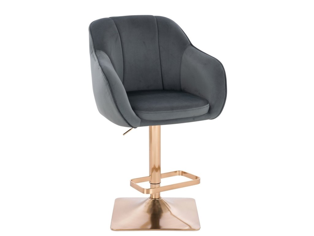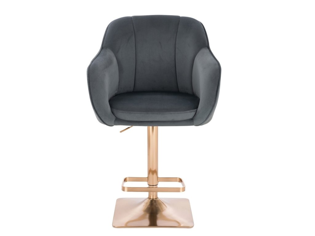 Barová židle AVOLA VELUR na zlaté hranaté podstavě - tmavě šedá