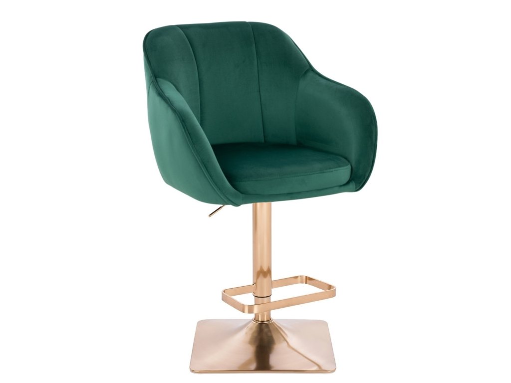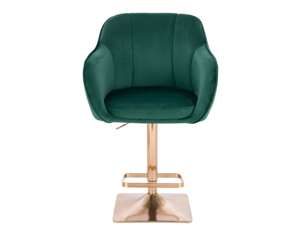Barová židle AVOLA VELUR na zlaté hranaté podstavě - zelená
