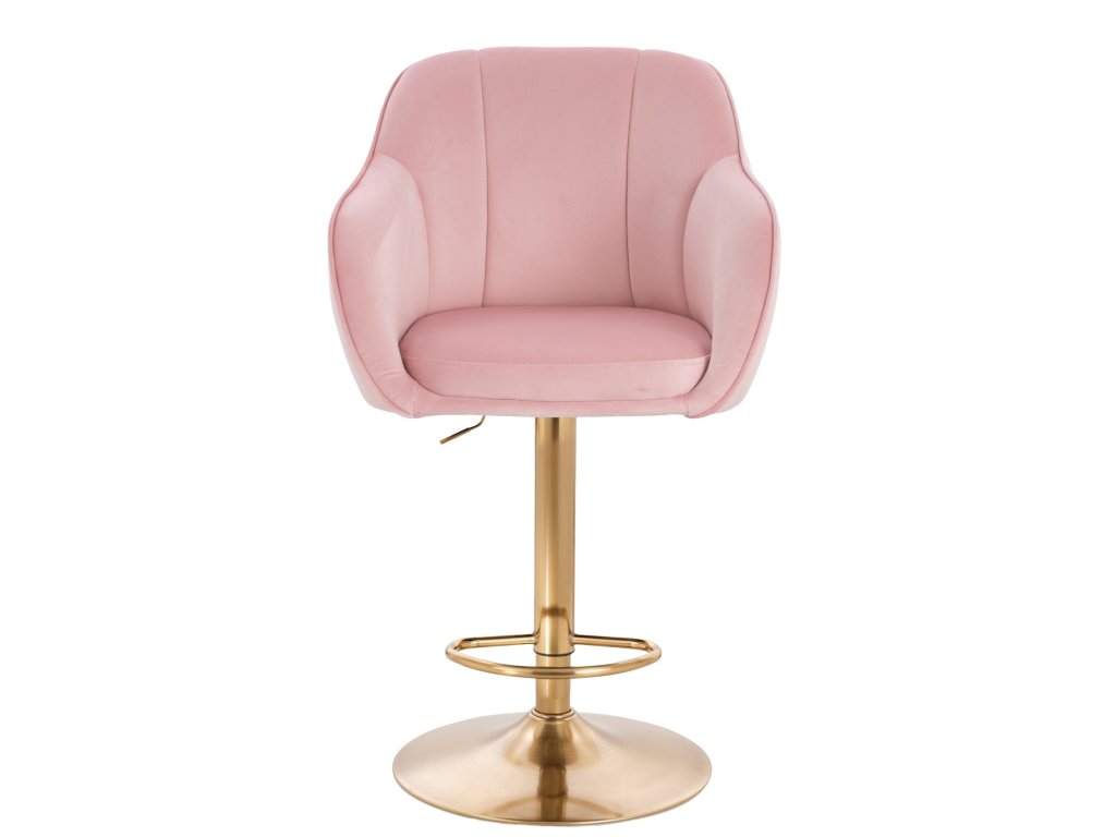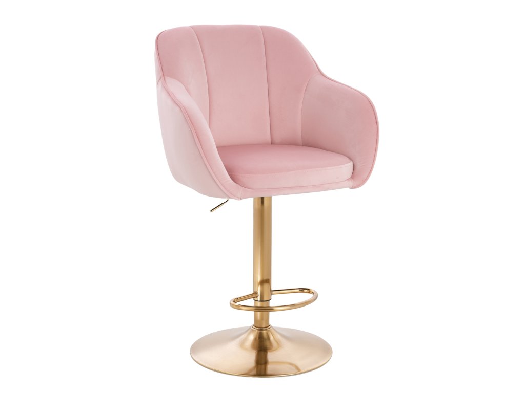 Barová židle AVOLA VELUR na zlatém talíři - světle růžová