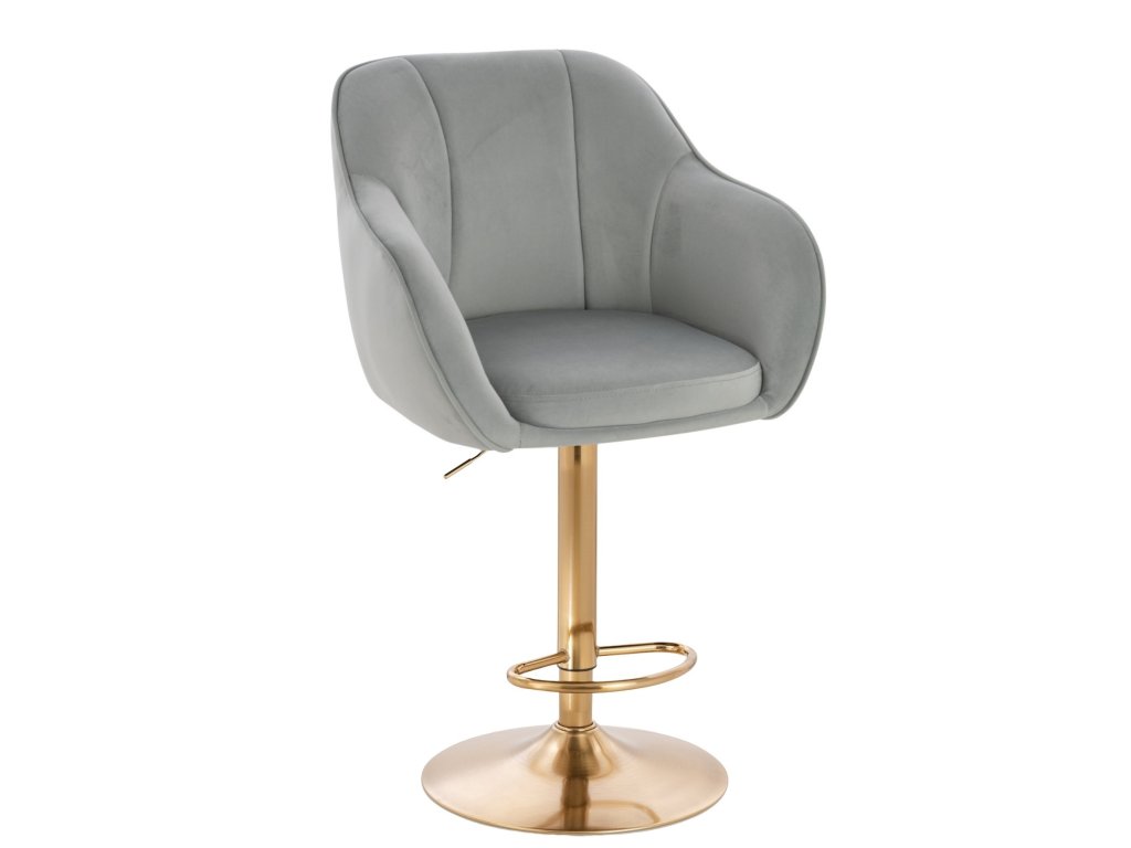 Barová židle AVOLA VELUR na zlatém talíři - světle šedá