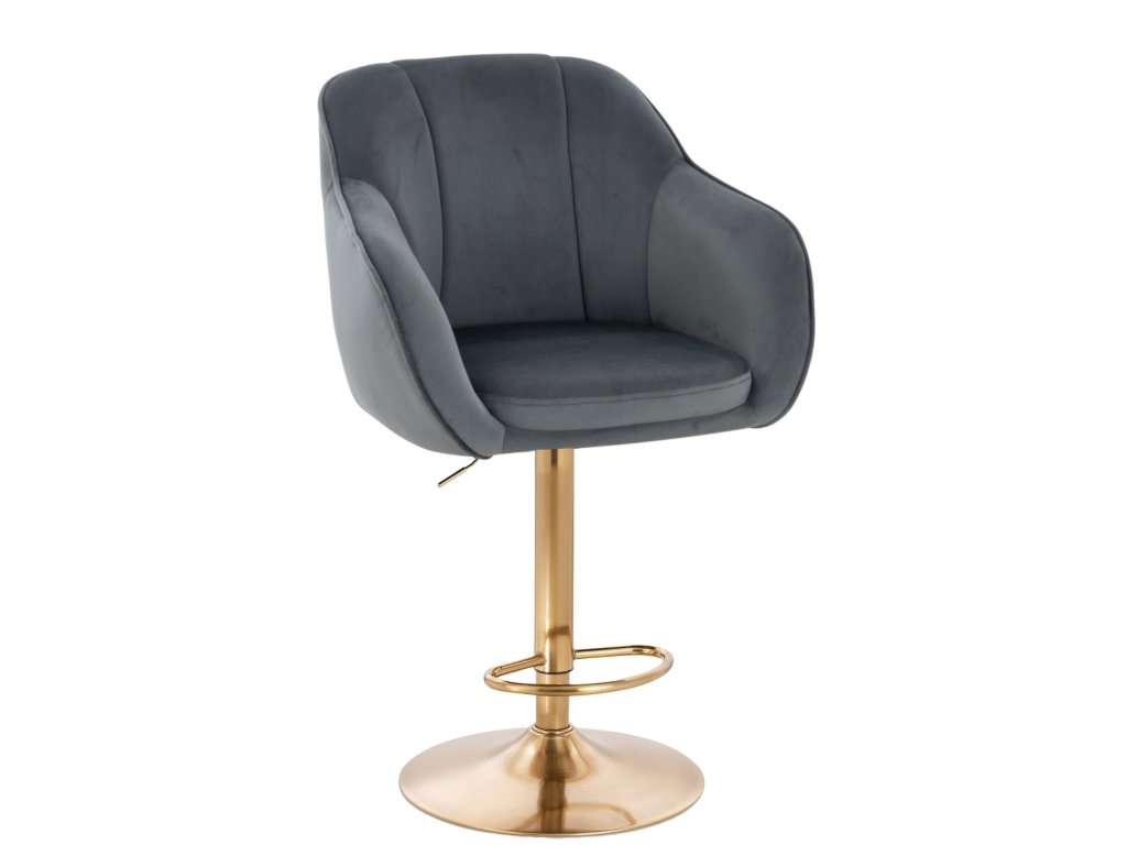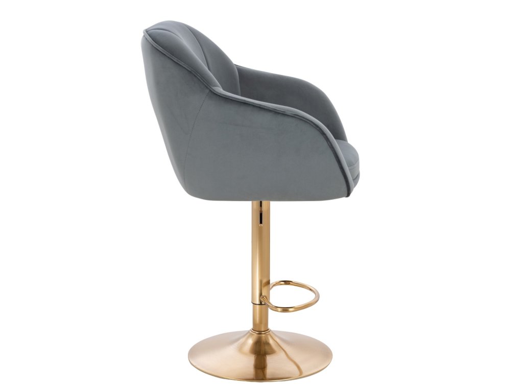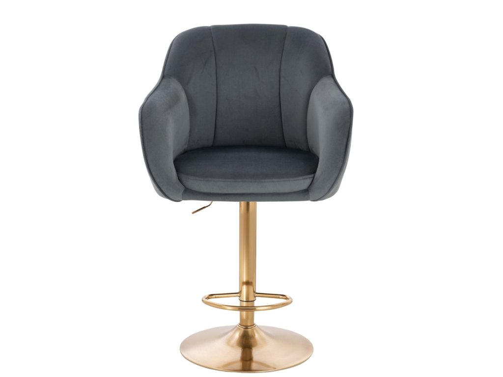 Barová židle AVOLA VELUR na zlatém talíři - tmavě šedá