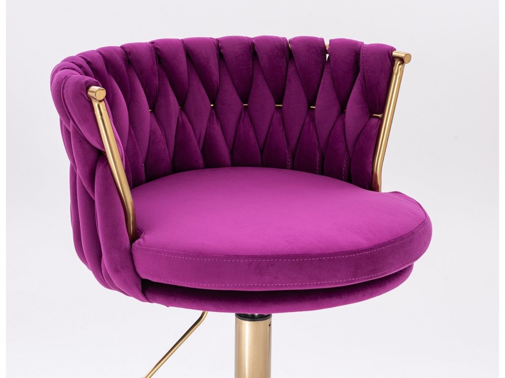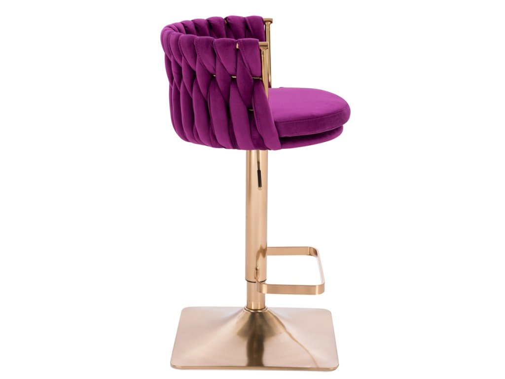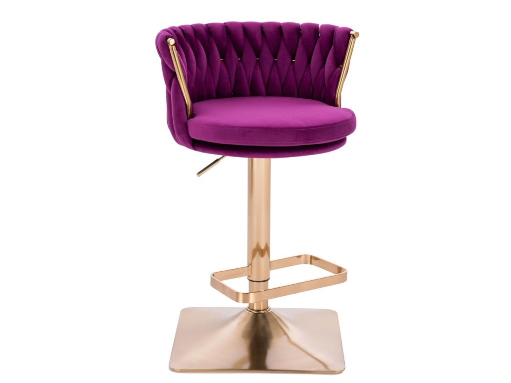 Barová židle LYON VELUR na zlaté hranaté podstavě - fuchsie