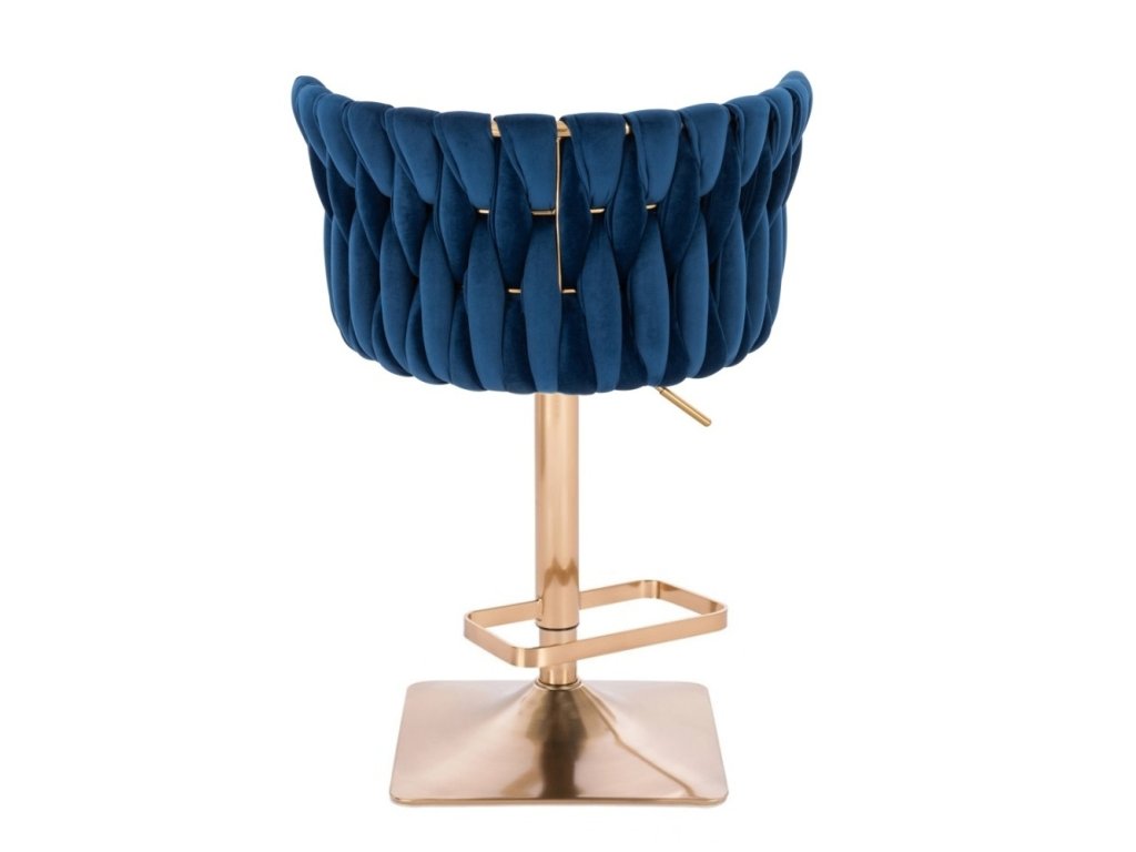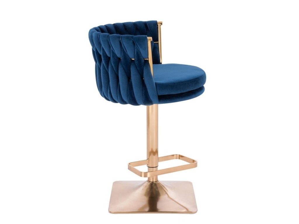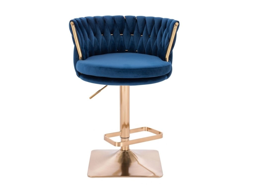 Barová židle LYON VELUR na zlaté hranaté podstavě - modrá