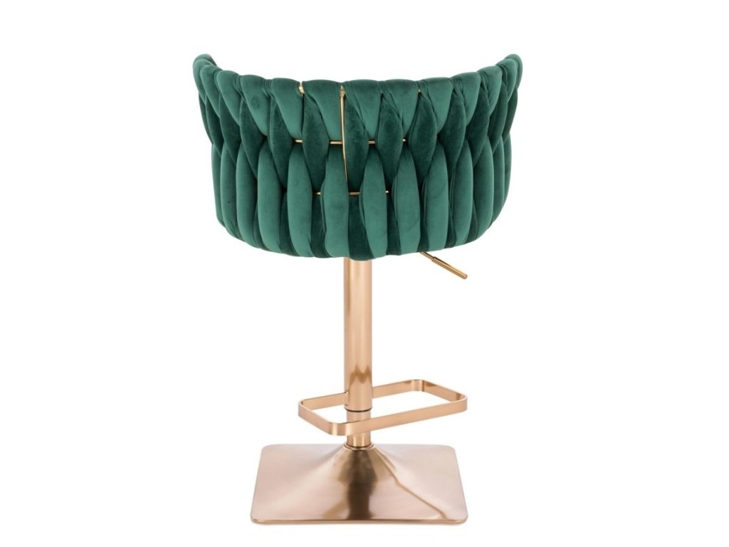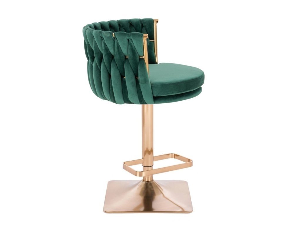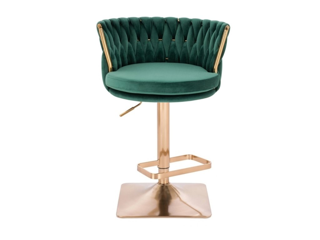 Barová židle LYON VELUR na zlaté hranaté podstavě - zelená