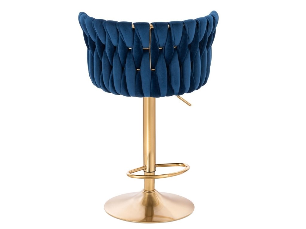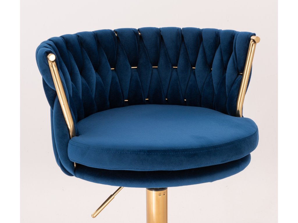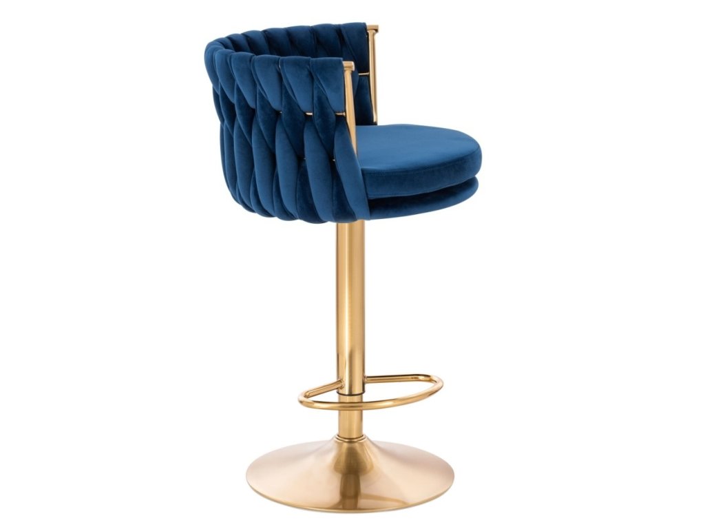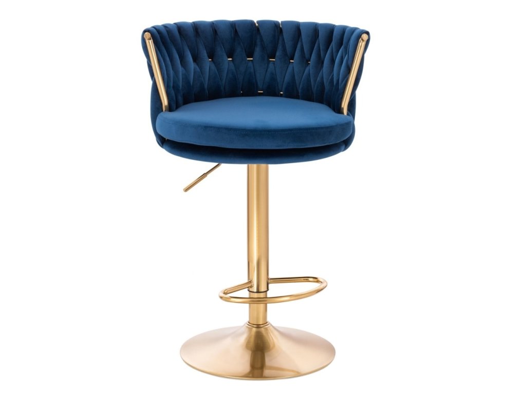 Barová židle LYON VELUR na zlatém talíři - modrá