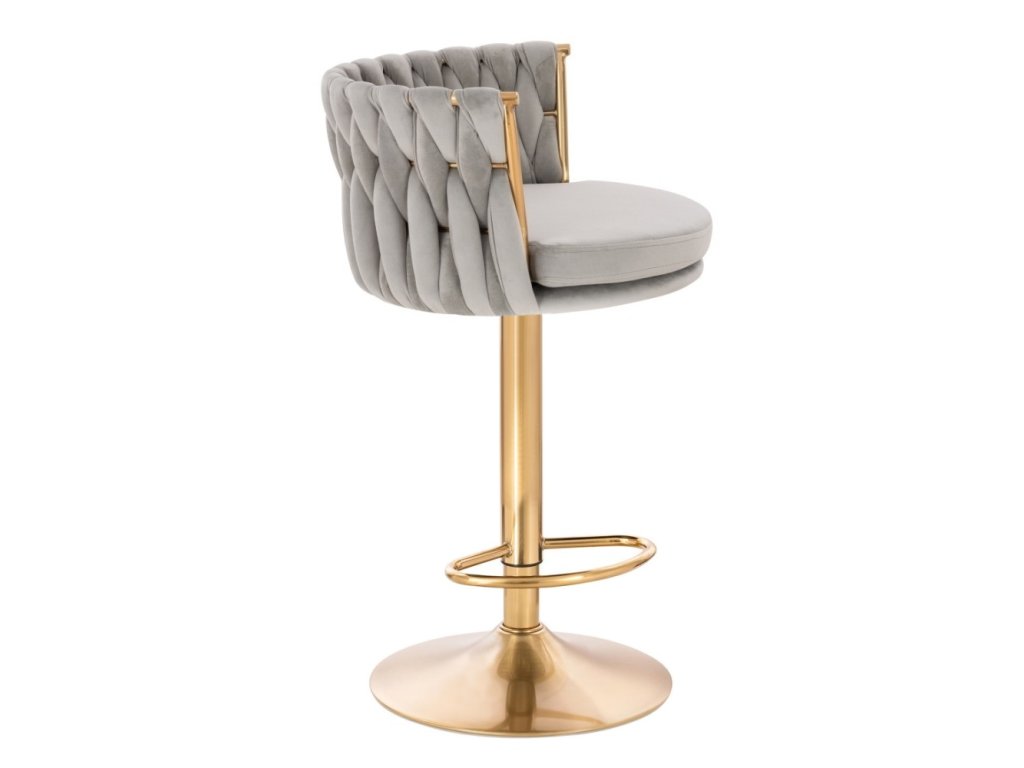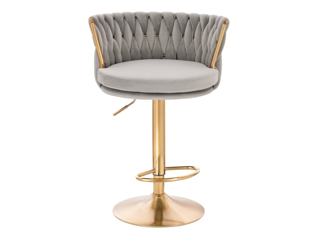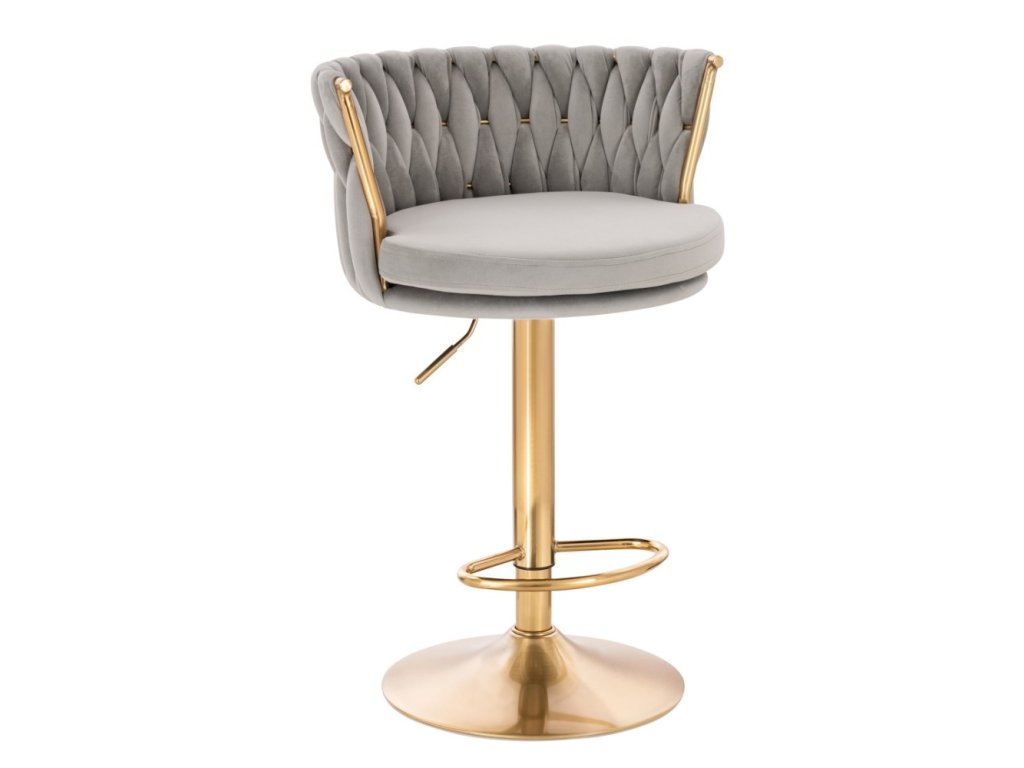 Barová židle LYON VELUR na zlatém talíři - světle šedá