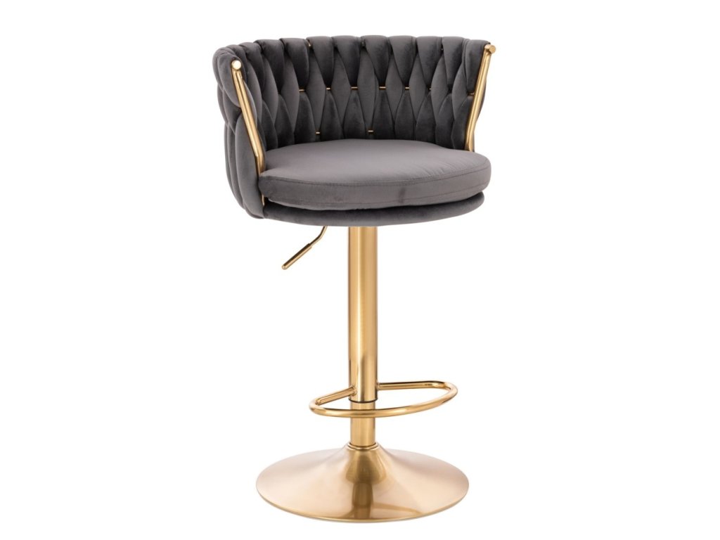 Barová židle LYON VELUR na zlatém talíři - tmavě šedá