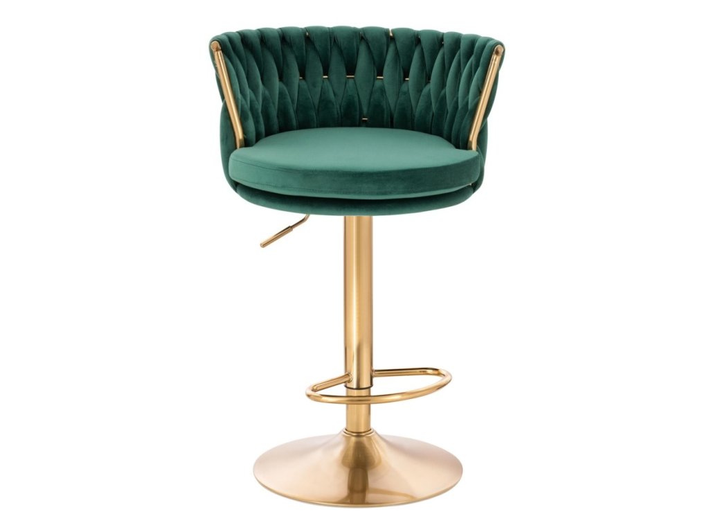Barová židle LYON VELUR na zlatém talíři - zelená