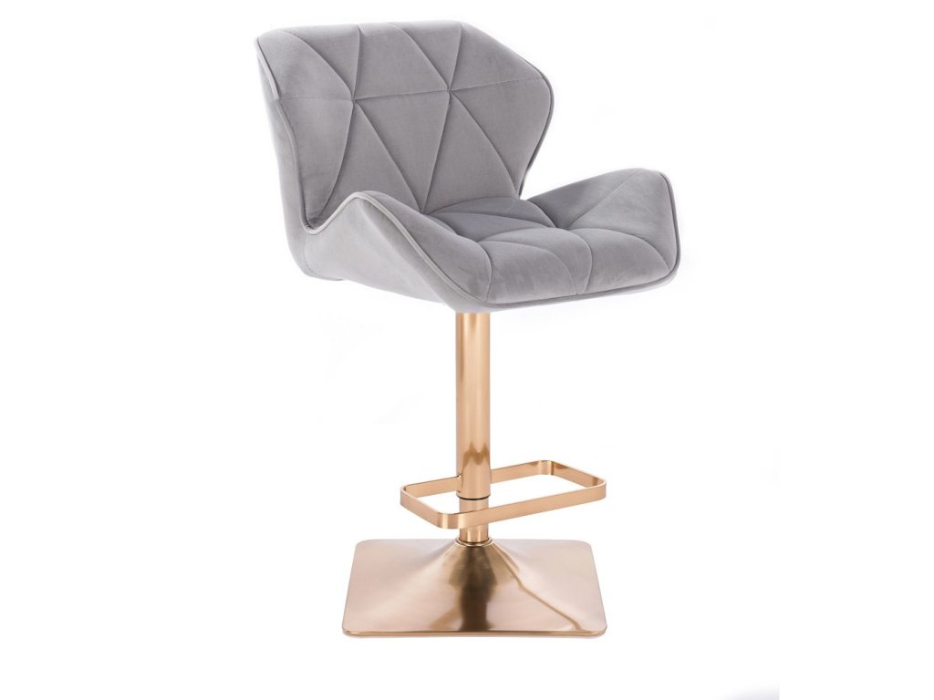 Barová židle MILANO VELUR na zlaté hranaté podstavě - světle šedá