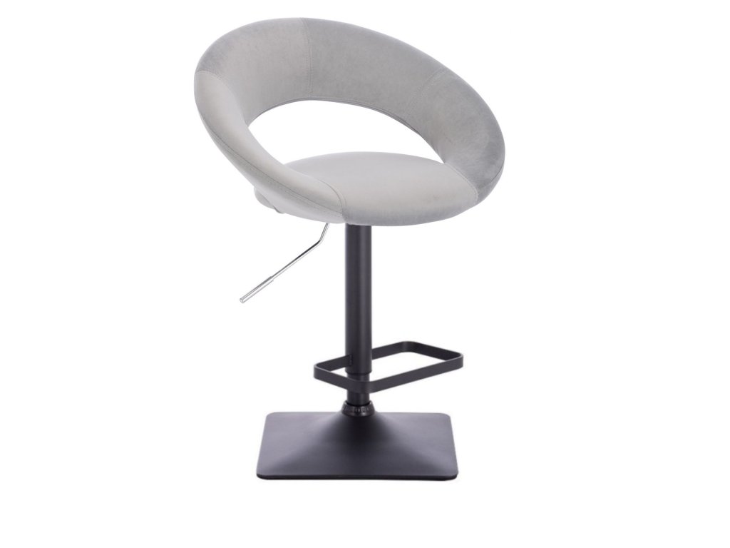 Barová židle NAPOLI VELUR na černé hranaté podstavě - světle šedá