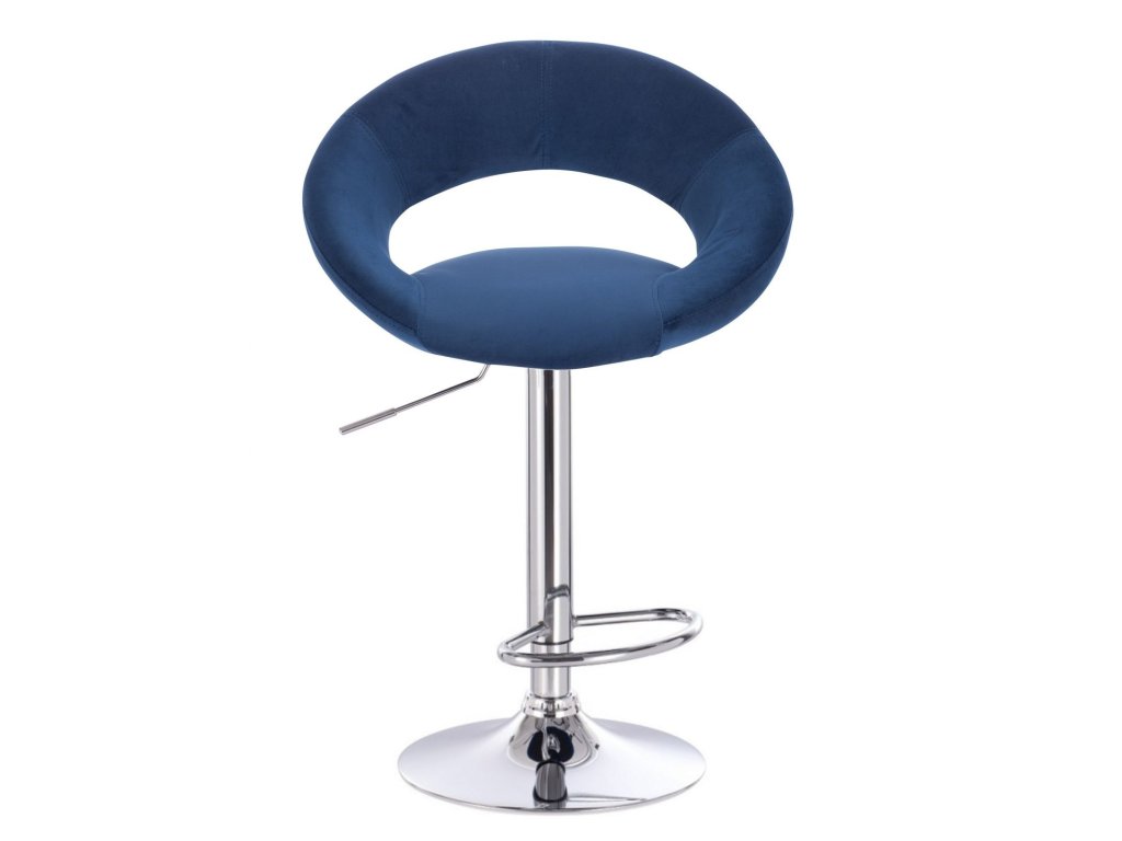 Barová židle NAPOLI VELUR na stříbrném talíři - modrá