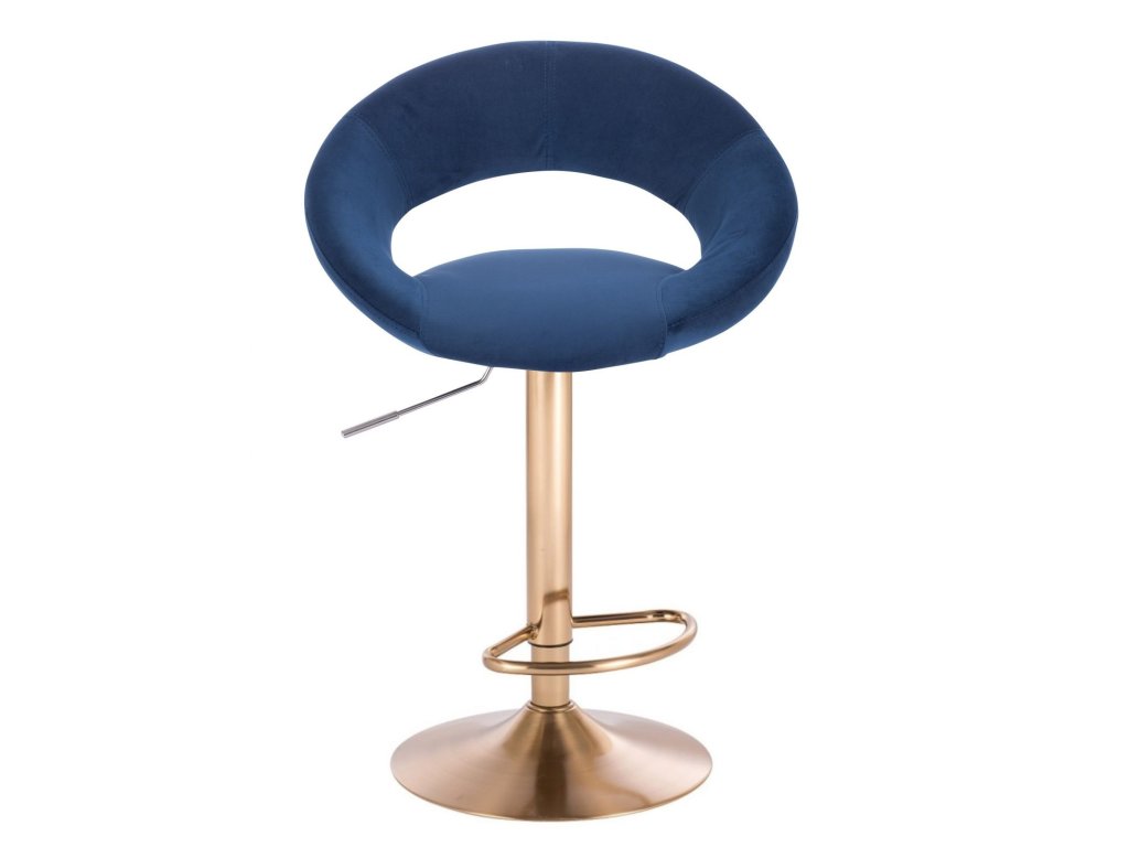 Barová židle NAPOLI VELUR na zlatém talíři - modrá