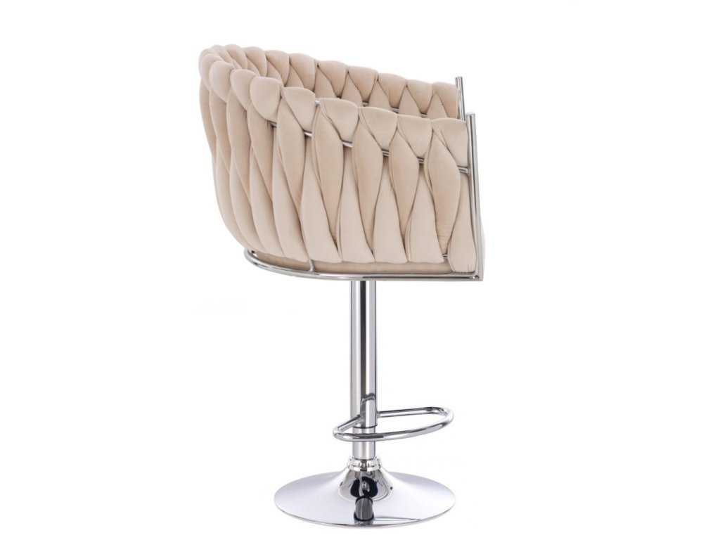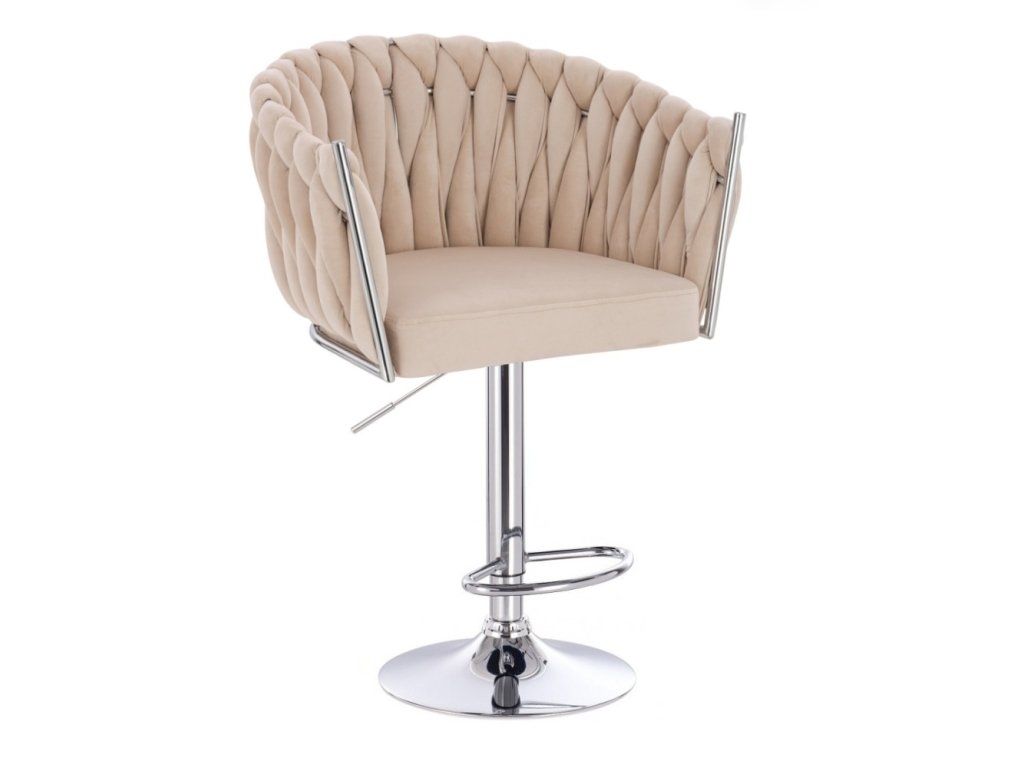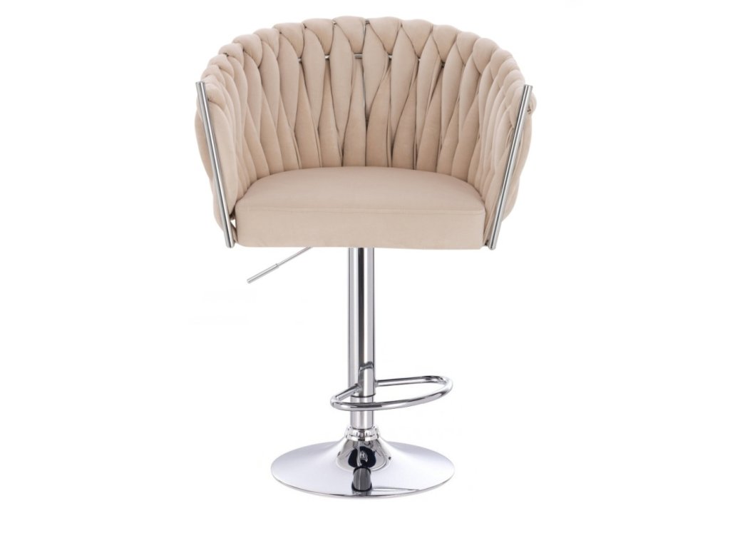 Barová židle NORDEN VELUR na stříbrném talíři - krémová
