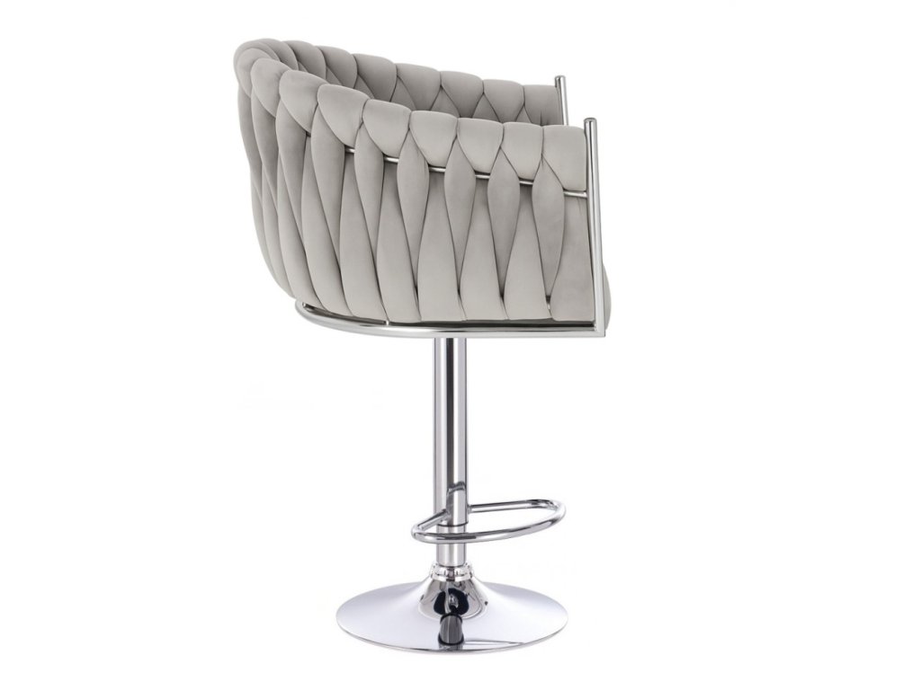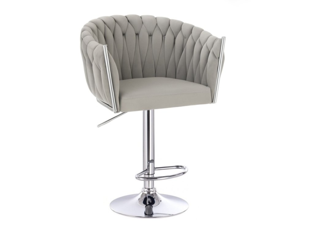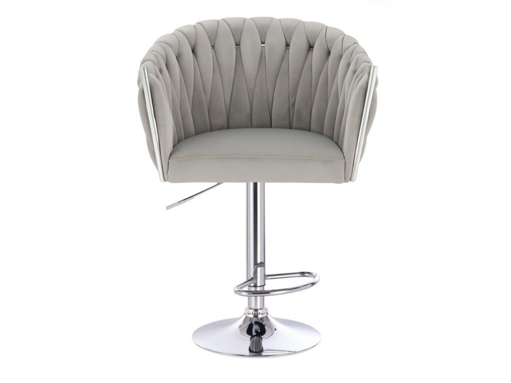 Barová židle NORDEN VELUR na stříbrném talíři - světle šedá