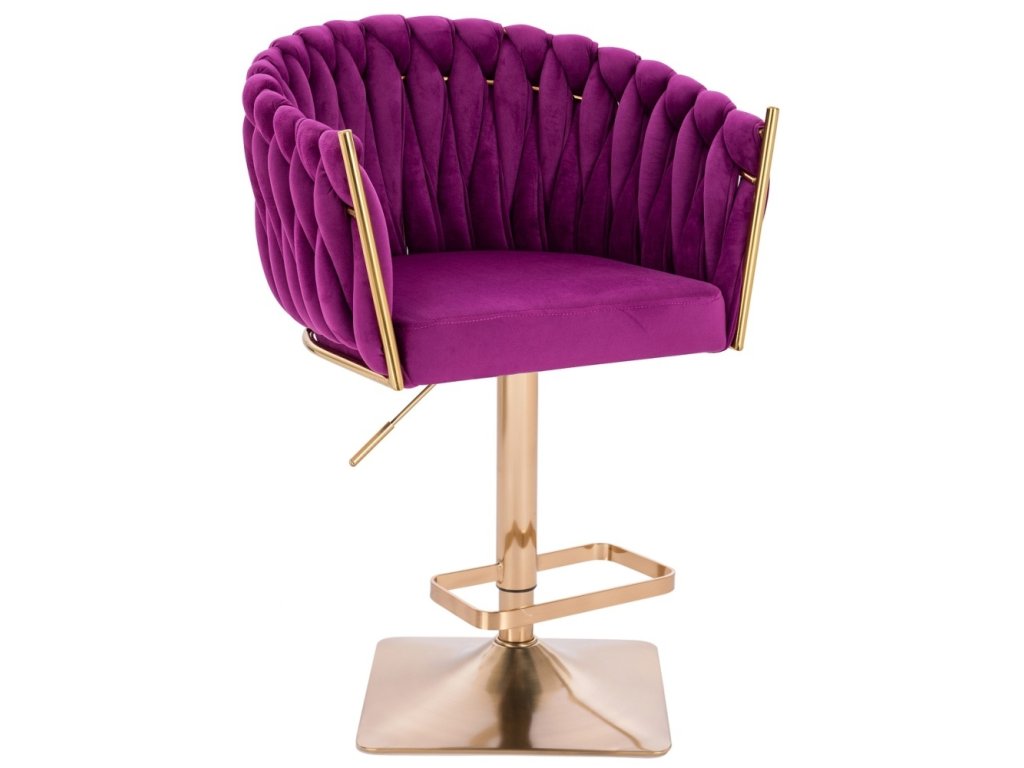 Barová židle NORDEN VELUR na zlaté hranaté podstavě - fuchsie