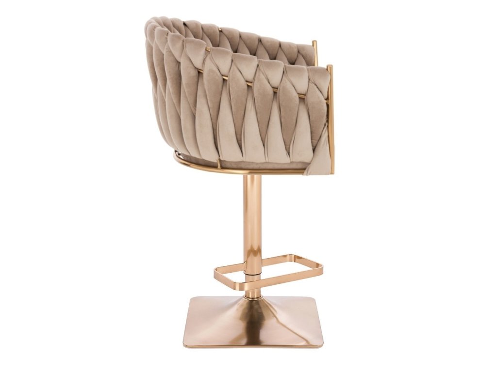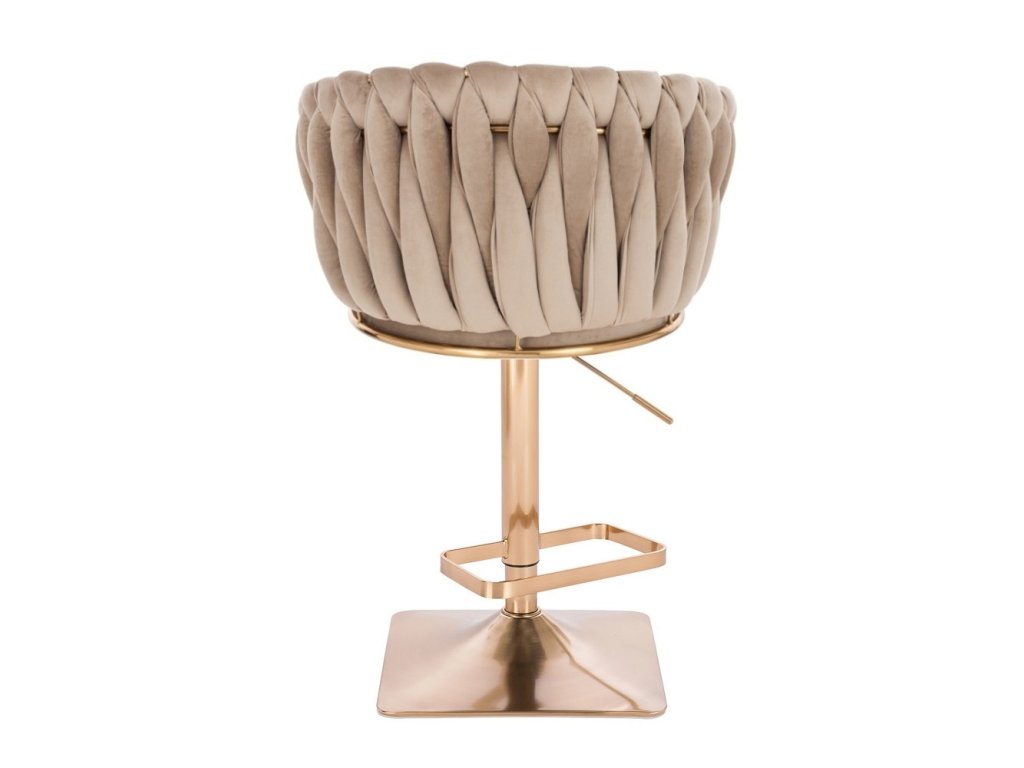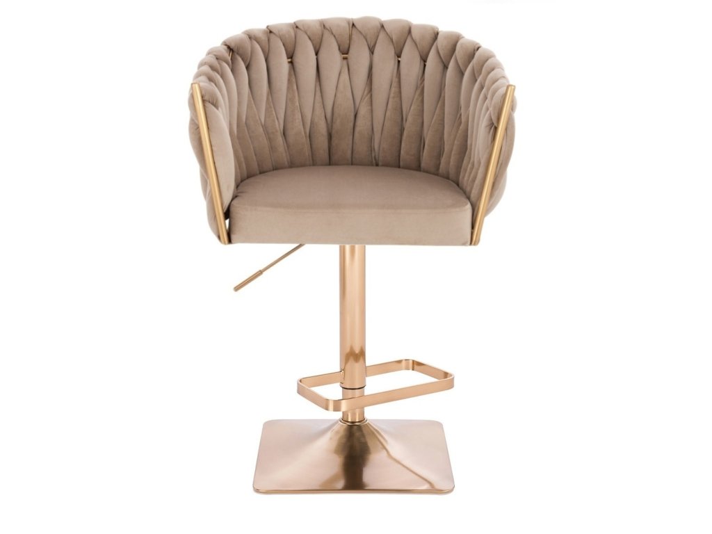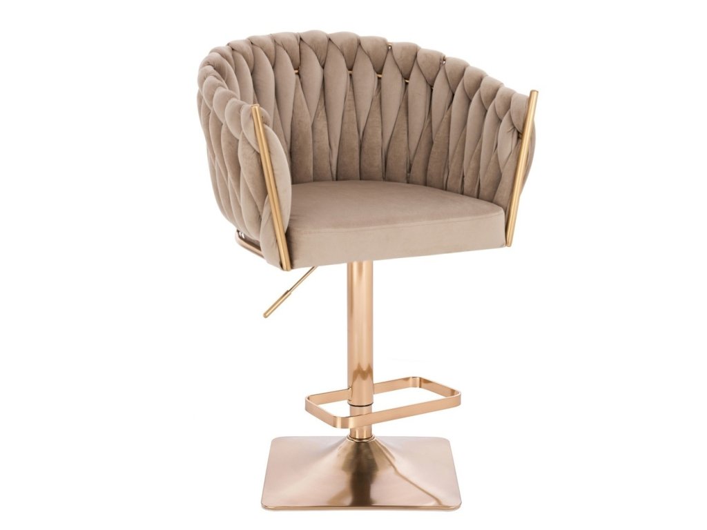 Barová židle NORDEN VELUR na zlaté hranaté podstavě - latte
