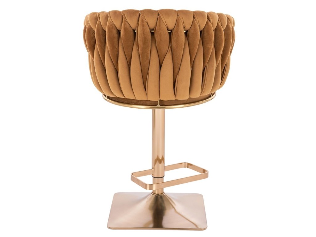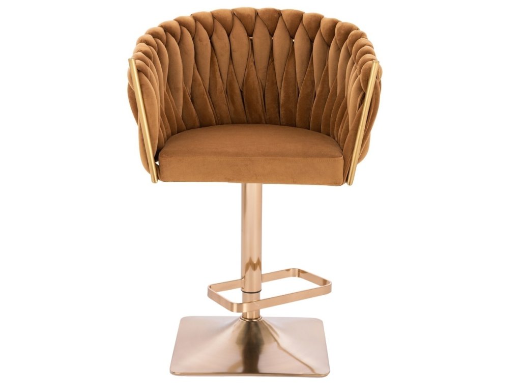Barová židle NORDEN VELUR na zlaté hranaté podstavě - medová