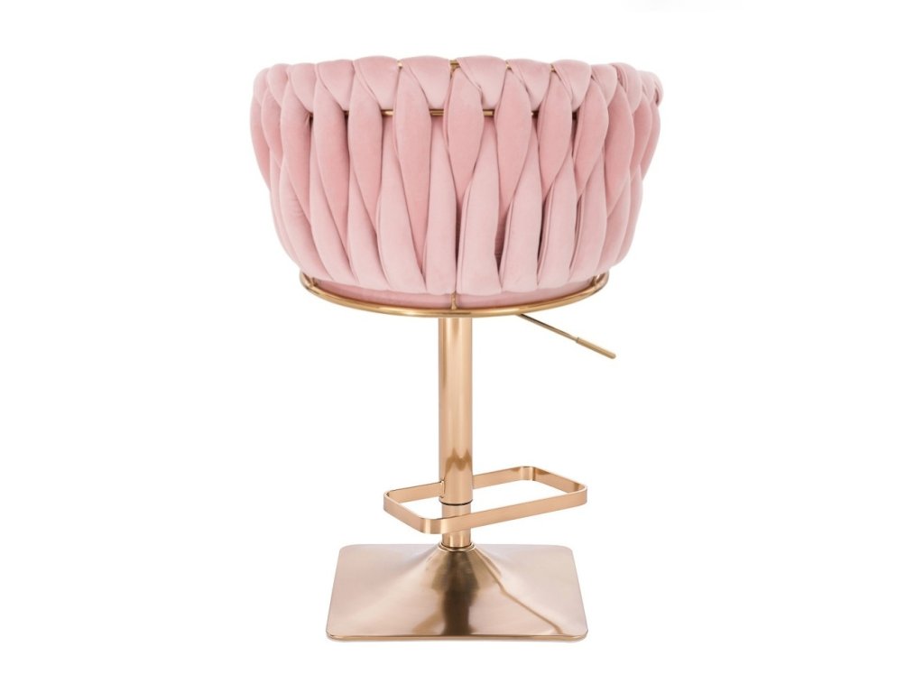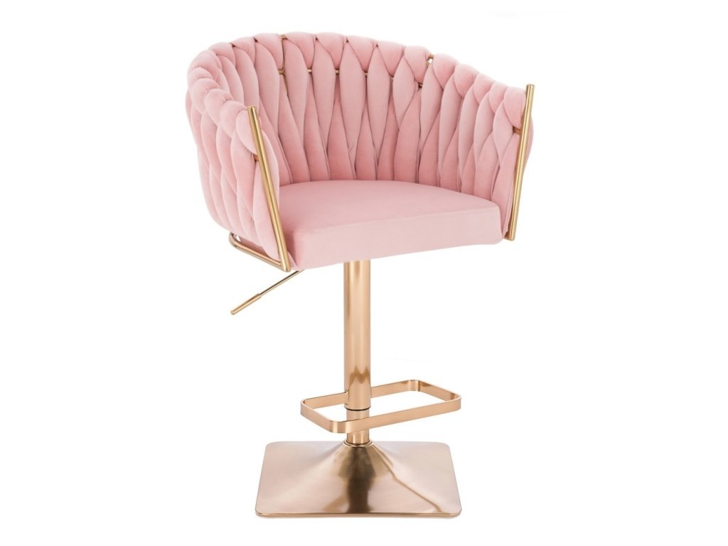 Barová židle NORDEN VELUR na zlaté hranaté podstavě - růžová