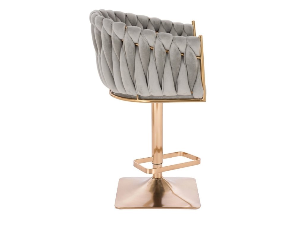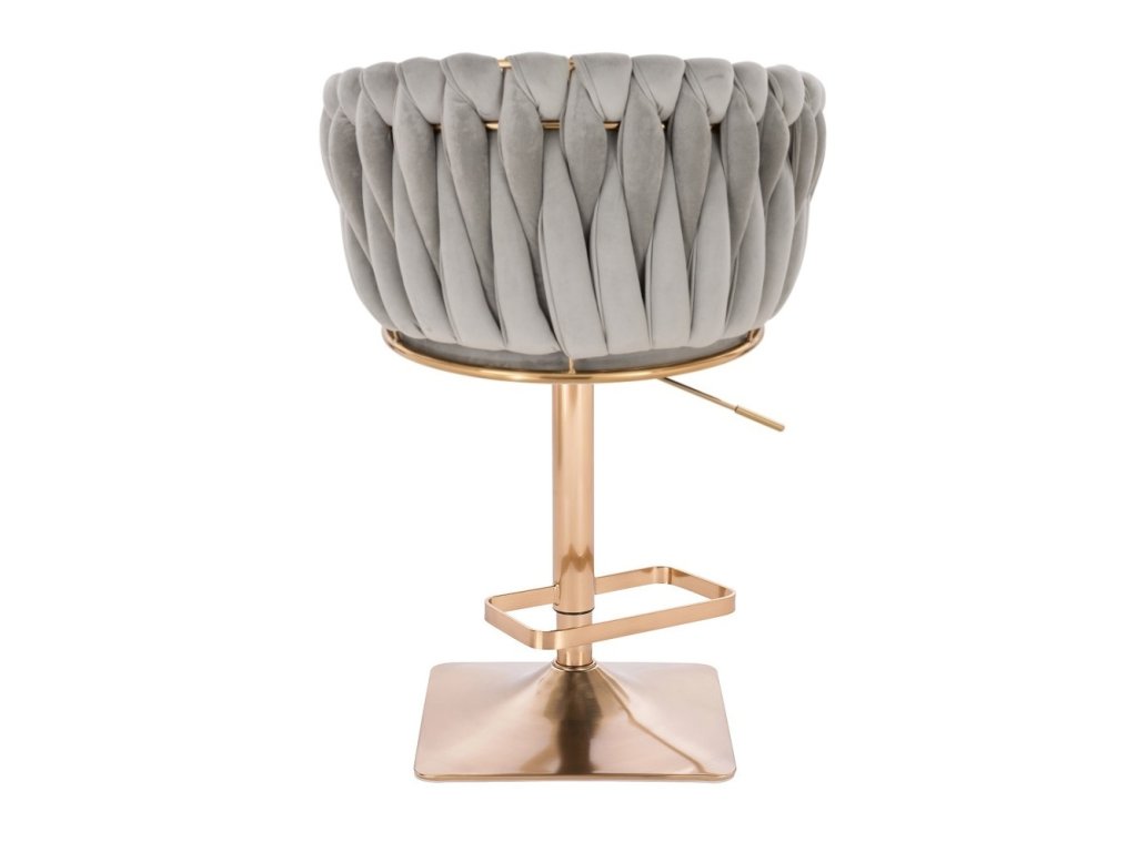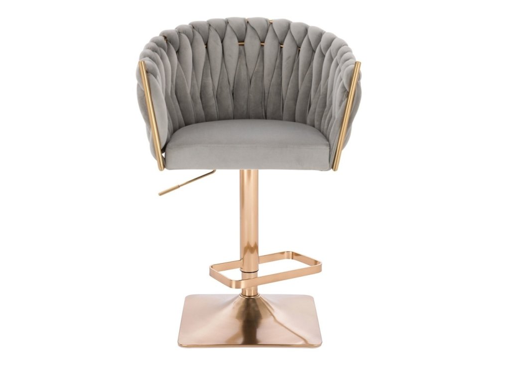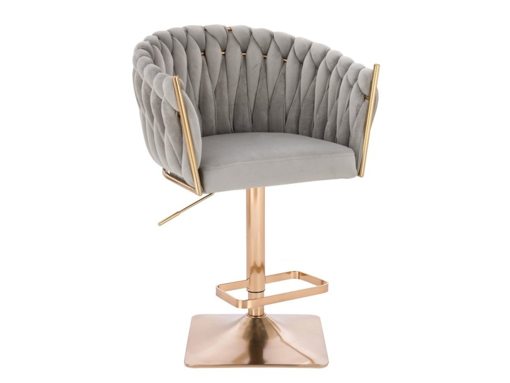 Barová židle NORDEN VELUR na zlaté hranaté podstavě - světle šedá