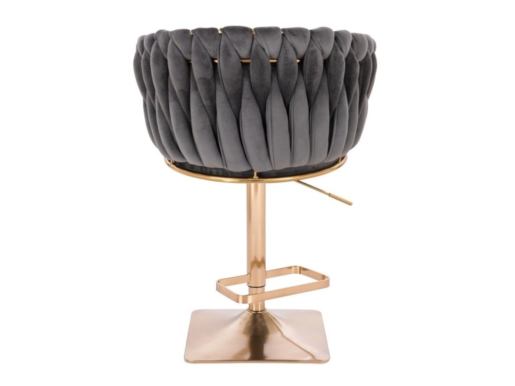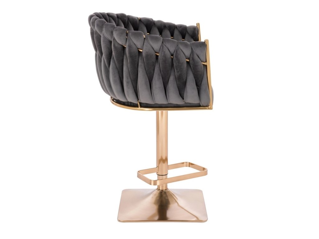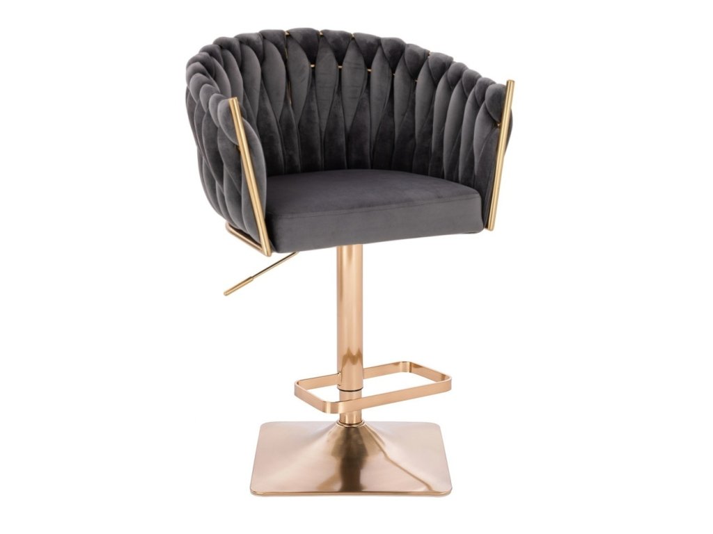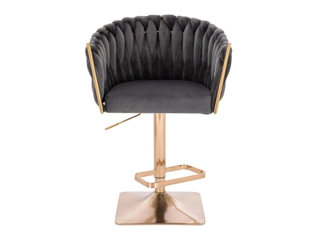 Barová židle NORDEN VELUR na zlaté hranaté podstavě - tmavě šedá