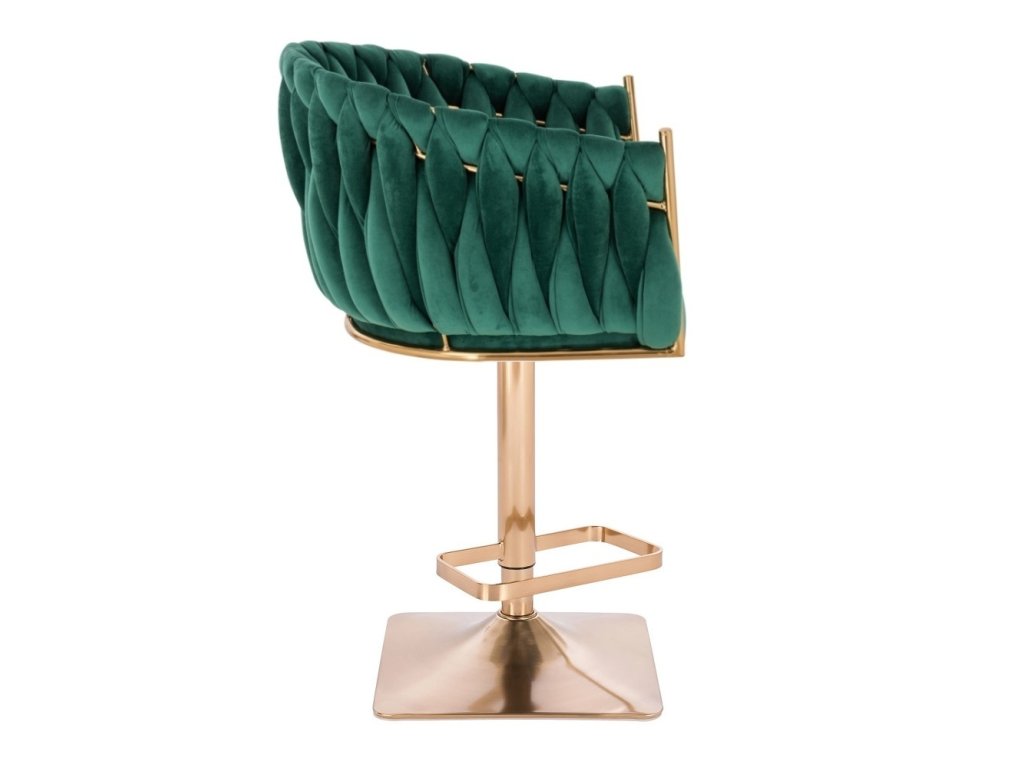 Barová židle NORDEN VELUR na zlaté hranaté podstavě - zelená