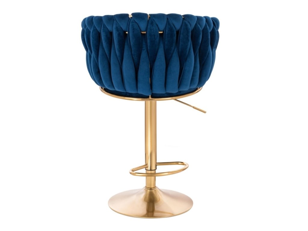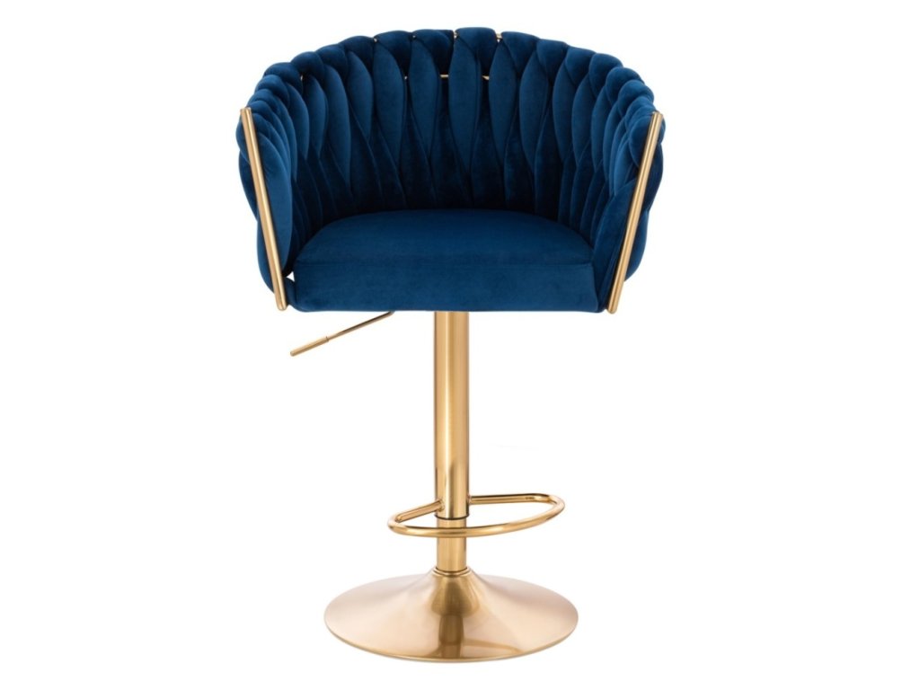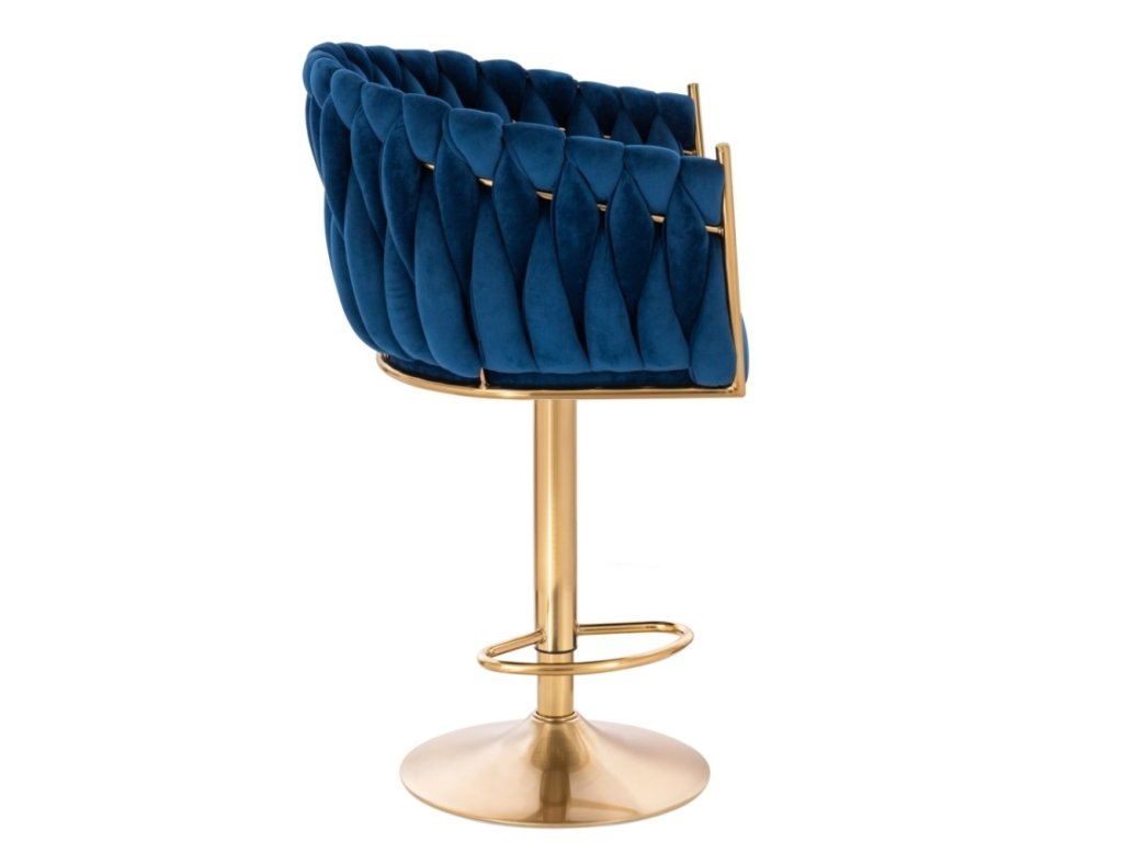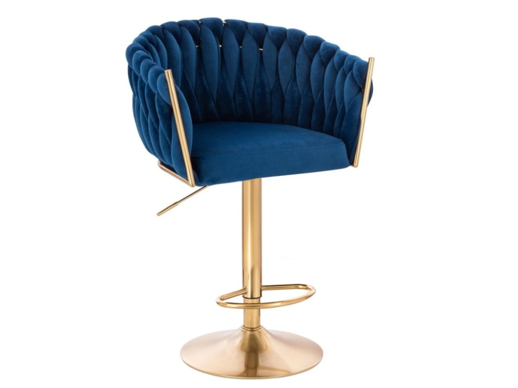 Barová židle NORDEN VELUR na zlatém talíři - modrá