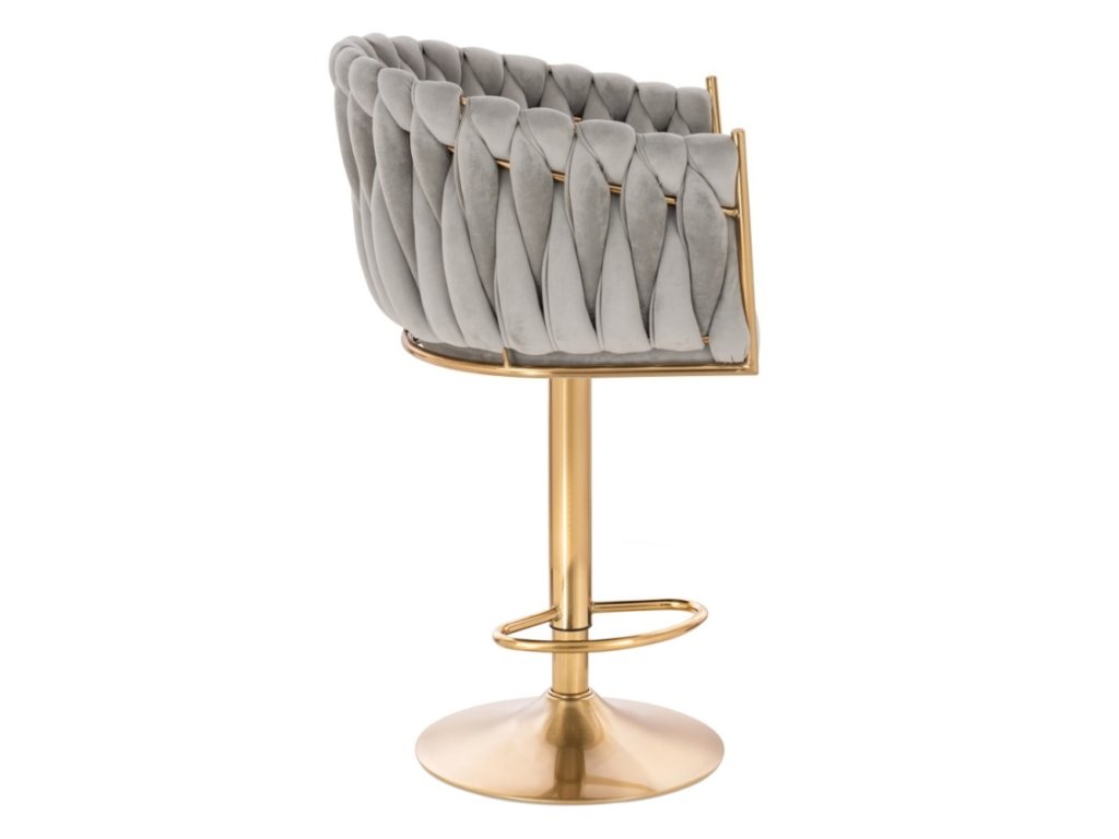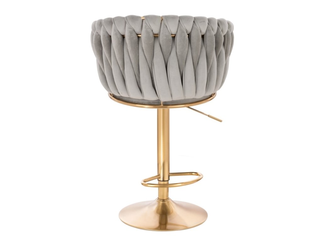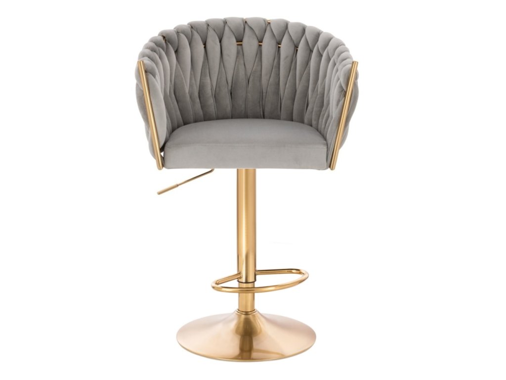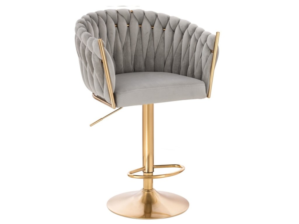 Barová židle NORDEN VELUR na zlatém talíři - světle šedá