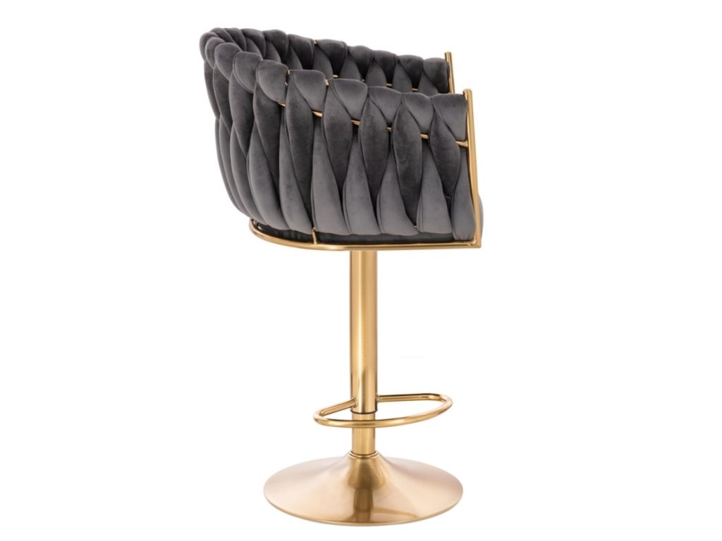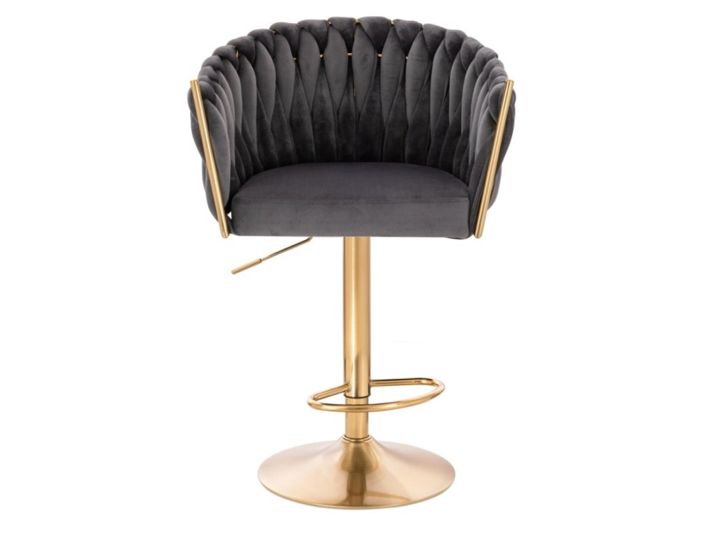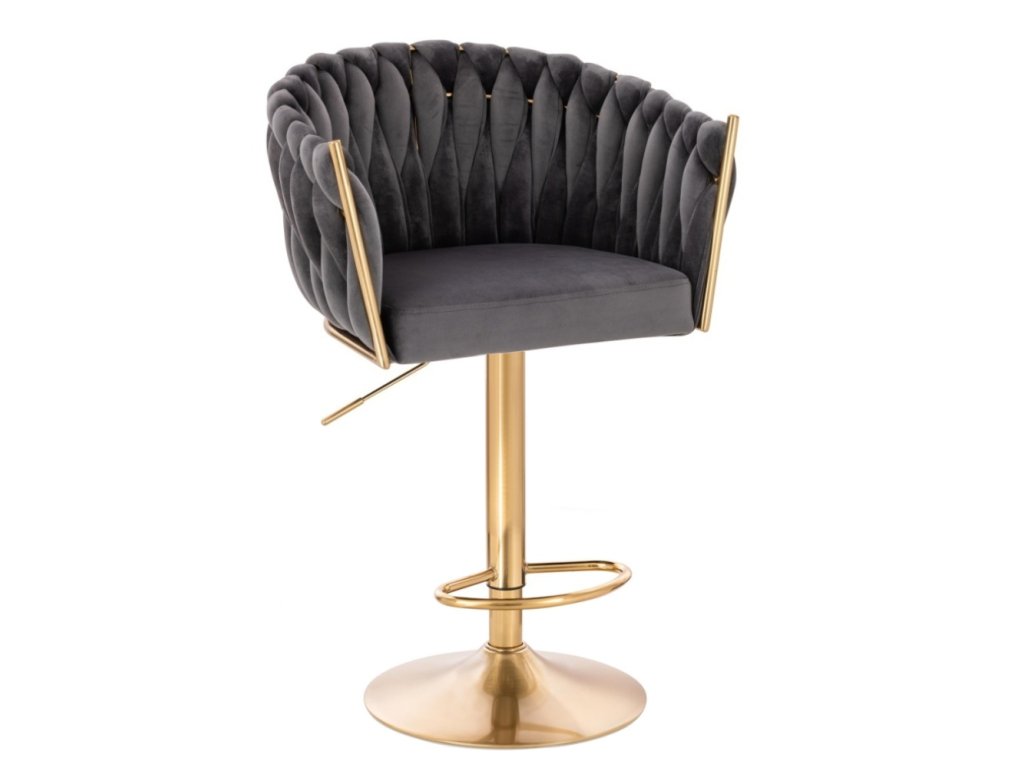 Barová židle NORDEN VELUR na zlatém talíři - tmavě šedá