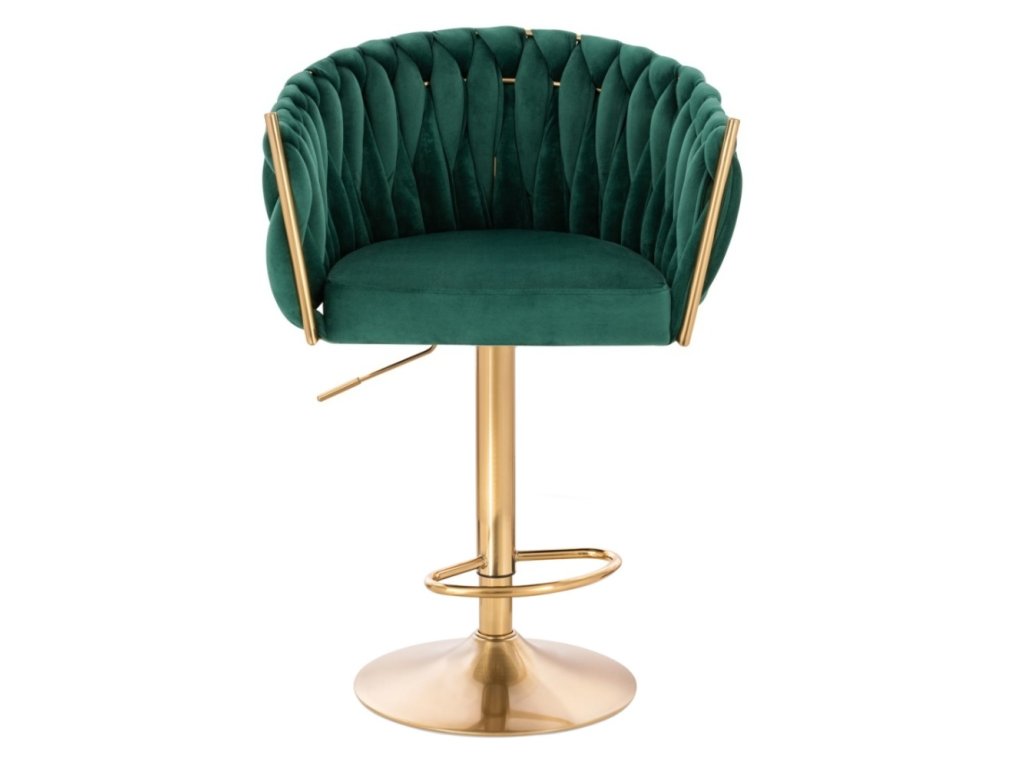 Barová židle NORDEN VELUR na zlatém talíři - zelená