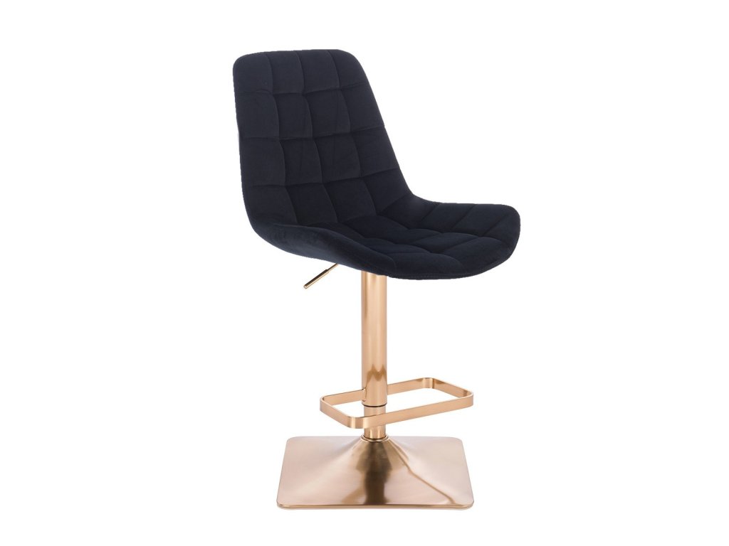Barová židle PARIS VELUR na zlaté hranaté podstavě - černá